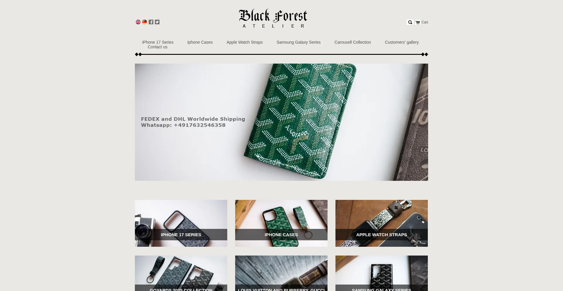 Die Website zeigt Luxusmarkennamen oder hochwertige Produkte an. Dies kann auf potenzielle gefälschte Waren oder unbefugte Markennutzung hinweisen, insbesondere wenn die Website keine offizielle Händlerautorisation besitzt. Üben Sie erhöhte Vorsicht bei der Bewertung der Authentizität aus.