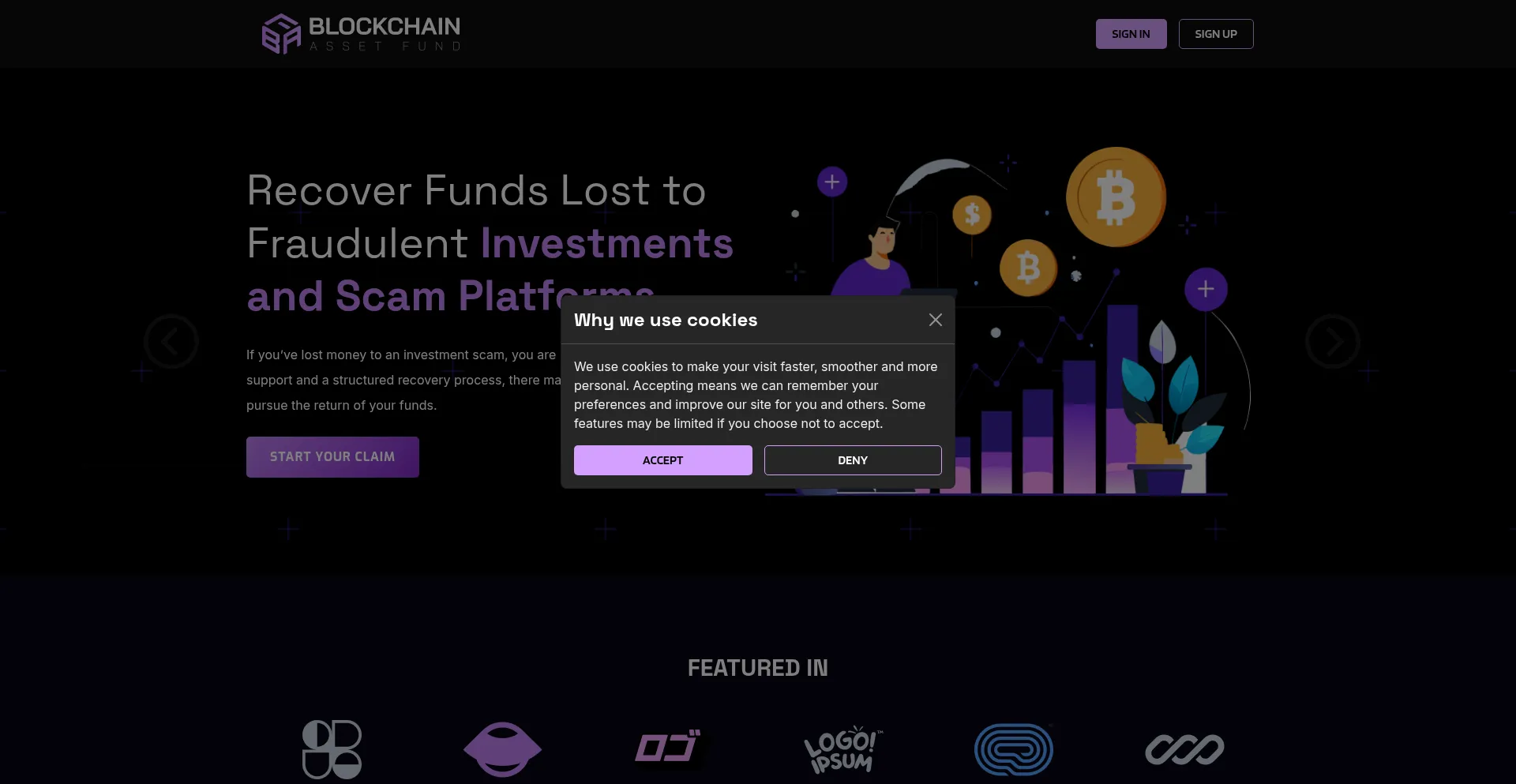 Die Website blockchainassetfund.com bewirbt Fondswiederherstellungsdienste für verlorene oder gestohlene Vermögenswerte. Während einige auf Erfolgshonorarbasis operieren, können andere Vorauszahlungen erfordern, was auf betrügerische Operationen hinweisen kann. Verifizieren Sie Anmeldeinformationen und regulatorische Compliance, bevor Sie solche Dienste in Anspruch nehmen.