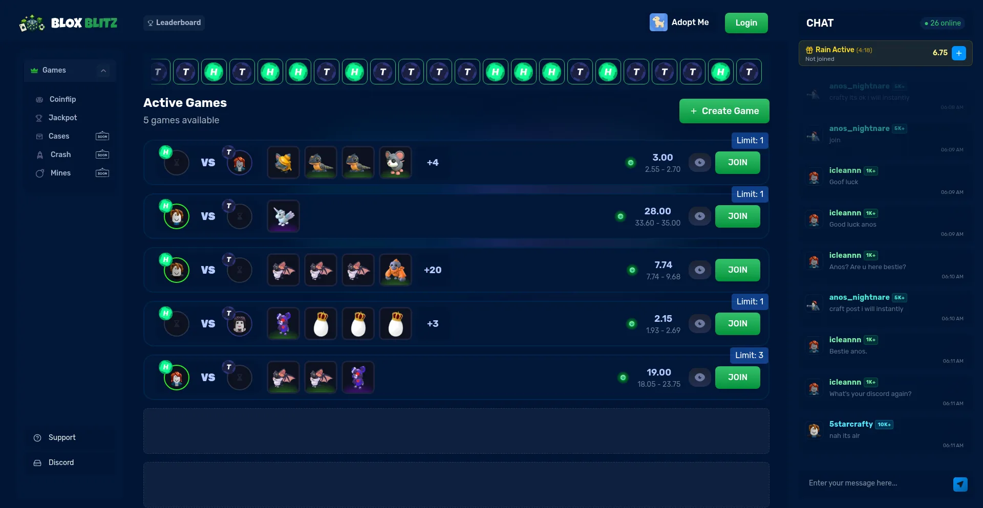 BloxBlitz - Roblox Adopt Me Coinflip, Giveaways & Pet Battles