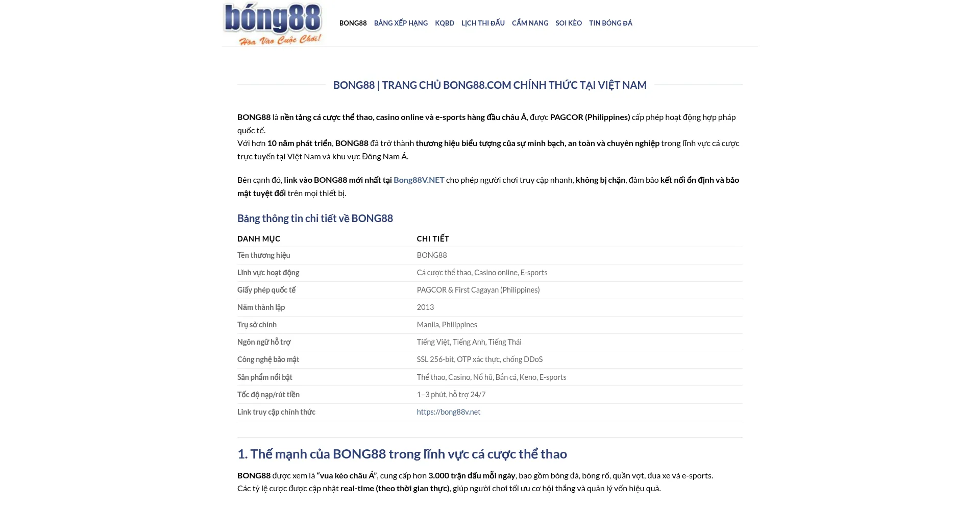 BONG88 là nền tảng cá cược thể thao, casino online và e-sports hàng đầu châu Á, được PAGCOR (Philippines) cấp phép hoạt động hợp pháp quốc t�...