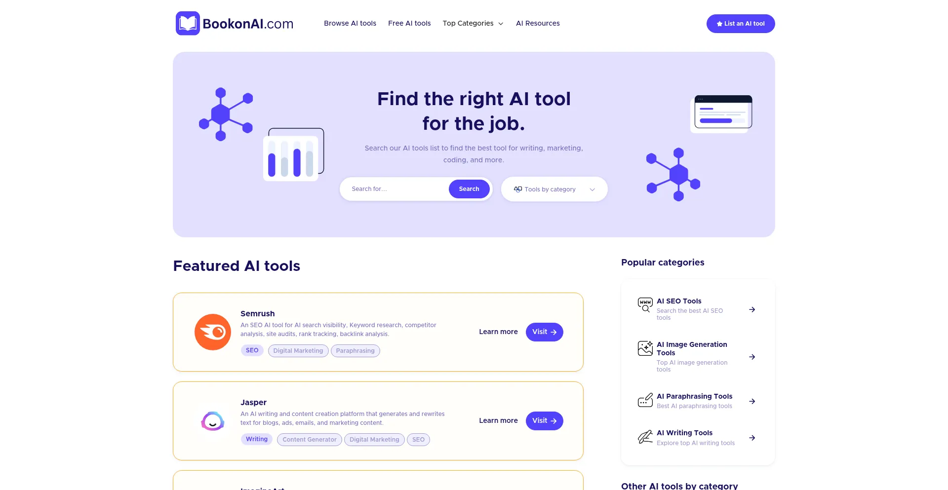 Find the right AI tool for every use. The best AI tools all in one easy-to-search directory. Compare tools and find the best tool for the job with Book on AI.