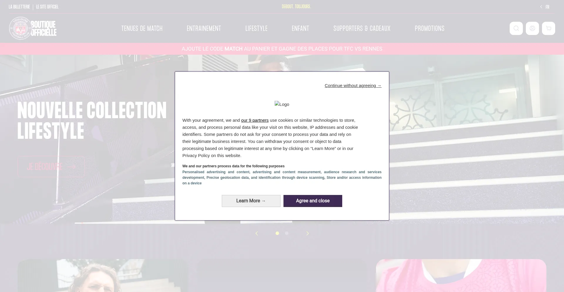 Die Website implementiert Cookie-Zustimmungsmechanismen in Compliance mit Datenschutzregulierungen wie DSGVO oder CCPA. Dies demonstriert, dass boutique.toulousefc.com Datenschutzstandards einhält und Benutzern Kontrolle über persönliche Datenerfassungspraktiken bietet.