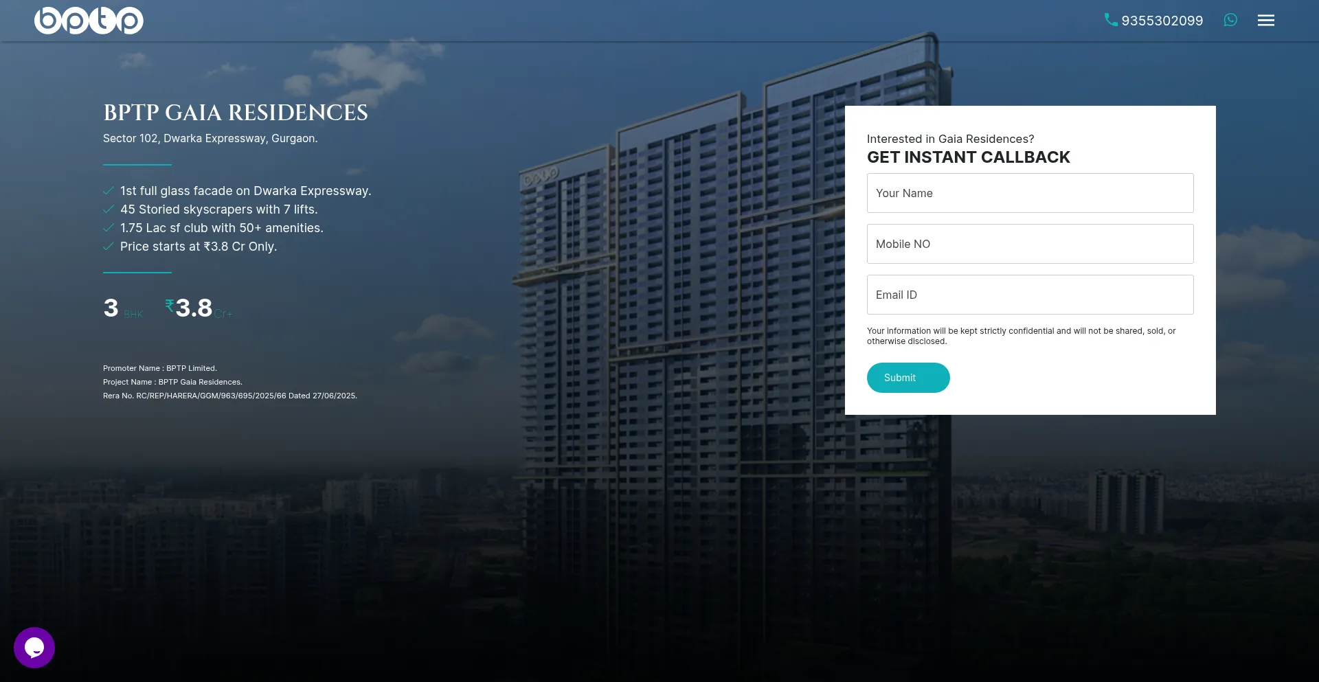 Explore BPTP Gaia Residences in Sector 102 Dwarka Expressway, Gurgaon. 3 & 4 BHK apartments with 100+ amenities. View floor plans & price list now!