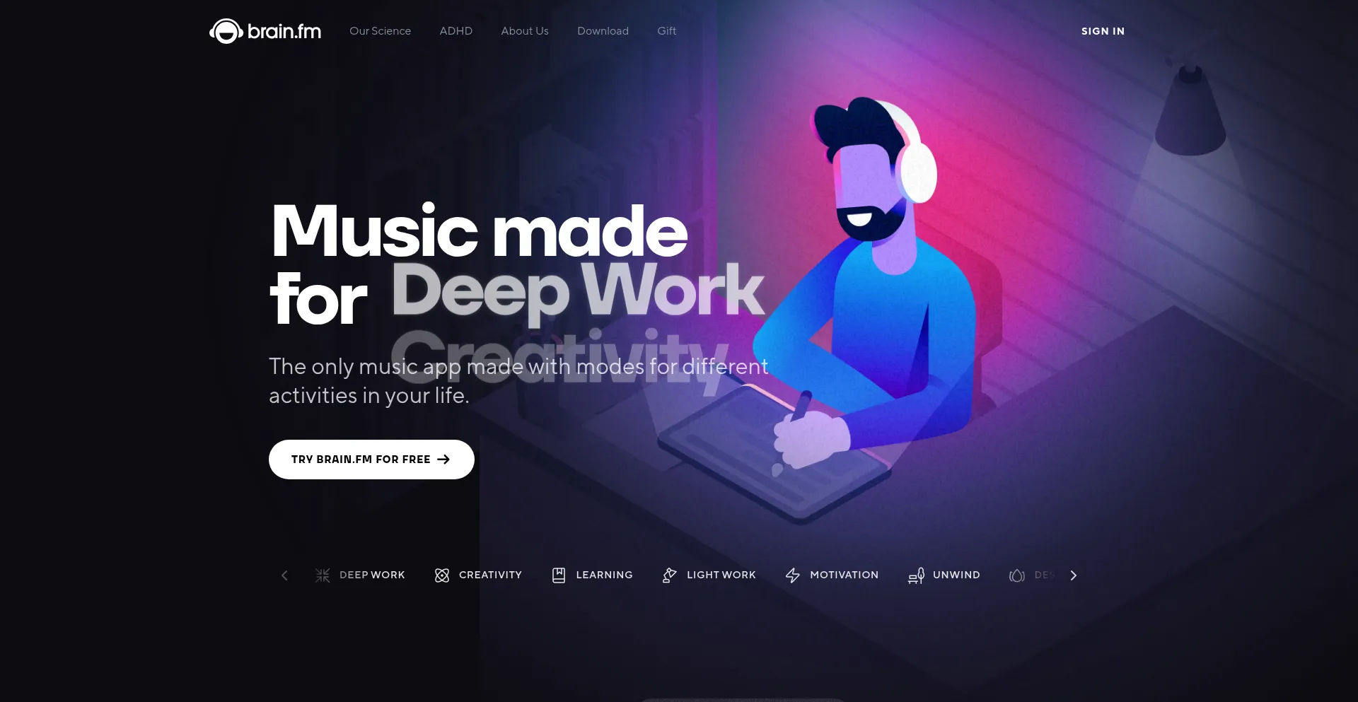 Use Brain.fm's functional music to help you focus relax and sleep better, using cutting edge neuroscience to get results.