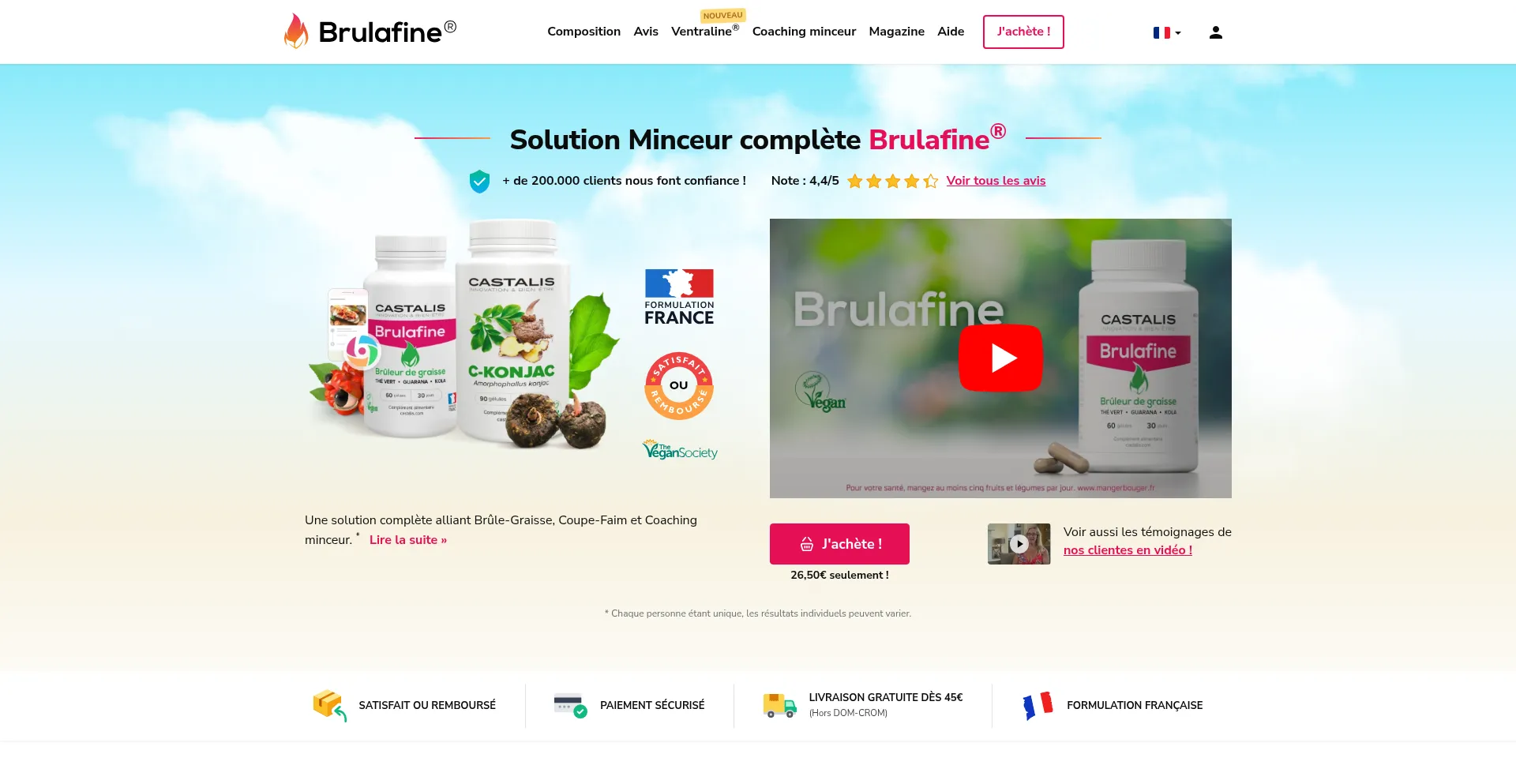 Site officiel de Brulafine®, le triple brûleur de graisse 100% naturel et efficace sous forme de gélule minceur.