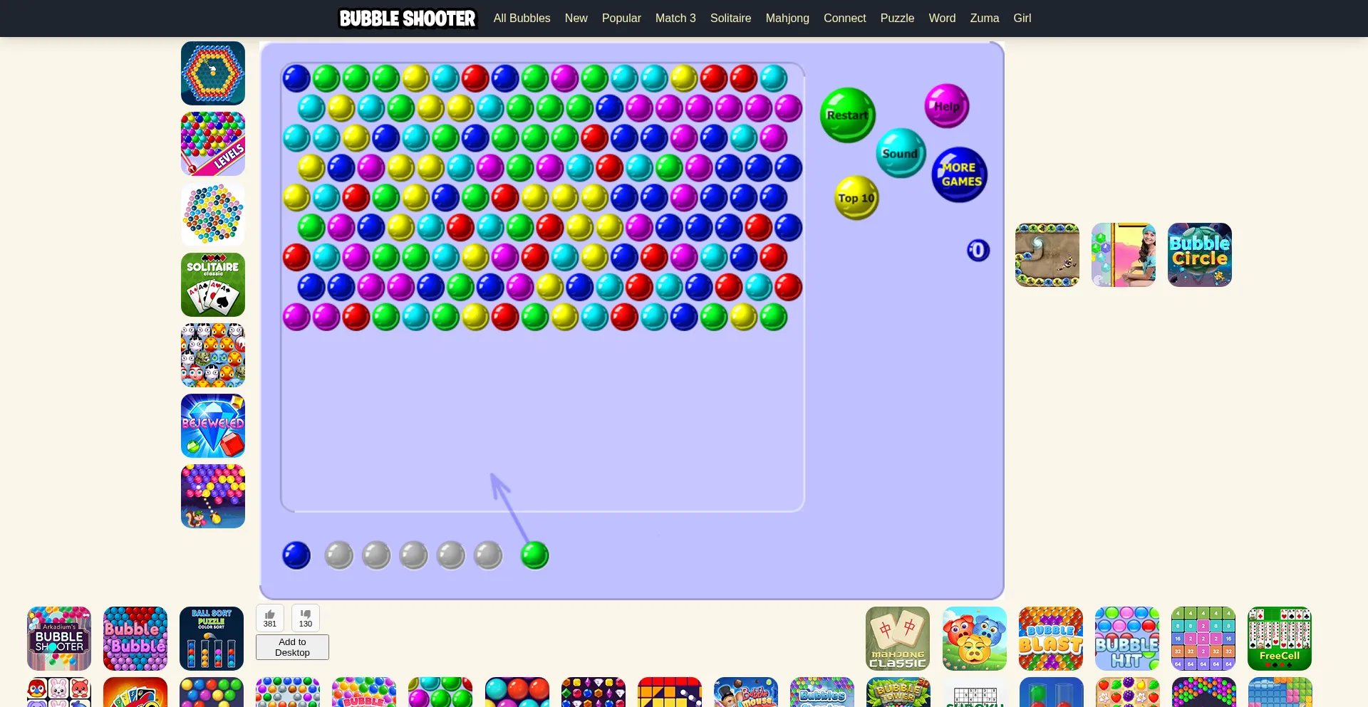 Play the world famous Bubble Shooter game on our website. It is free to play with no signup or download required. Aim, pop and shoot.