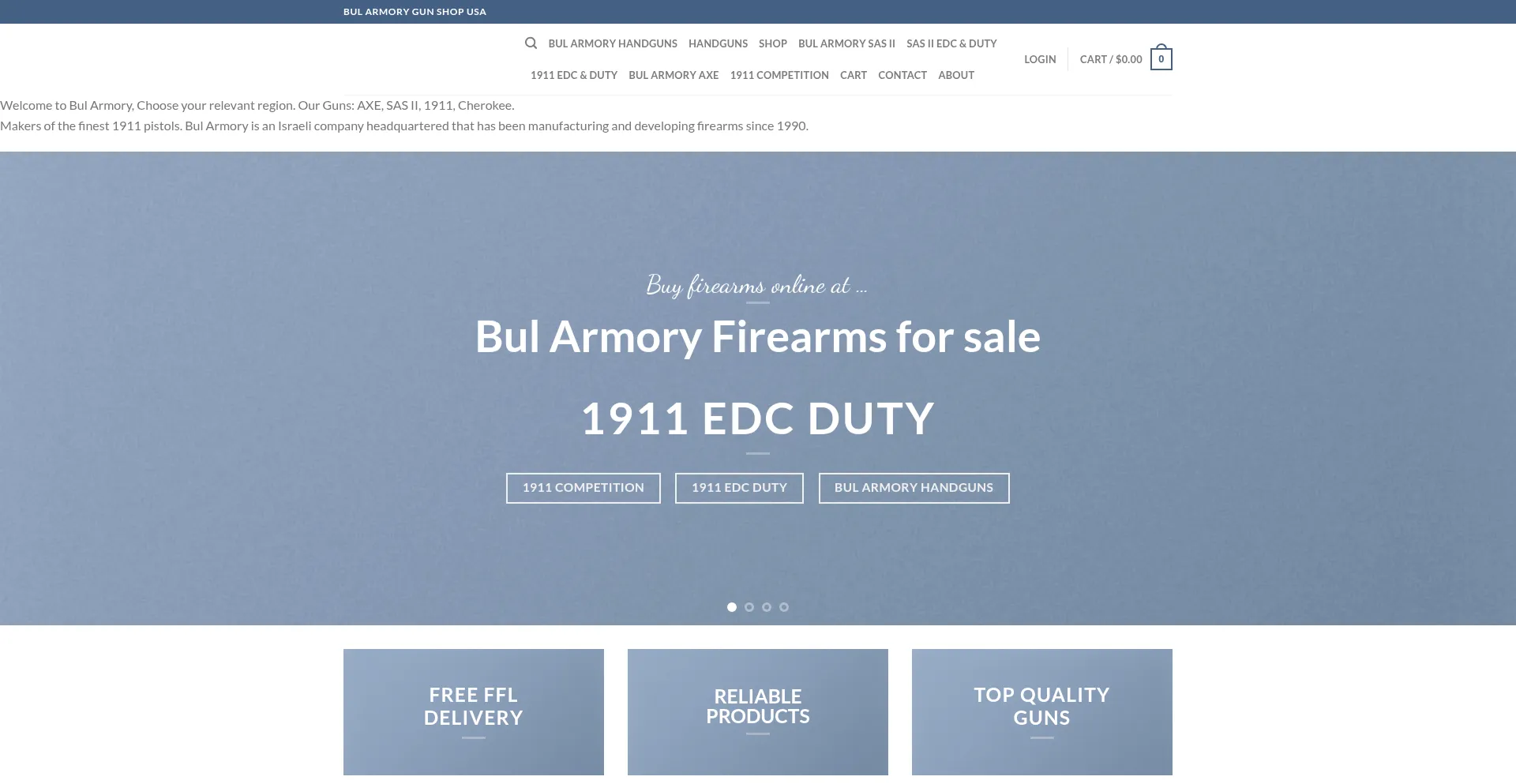 Welcome to Bul Armory, Choose your relevant region. Our Guns: AXE, SAS II, 1911, Cherokee. Makers of the finest 1911 pistols. Bul Armory is an Israeli company headquartered that...