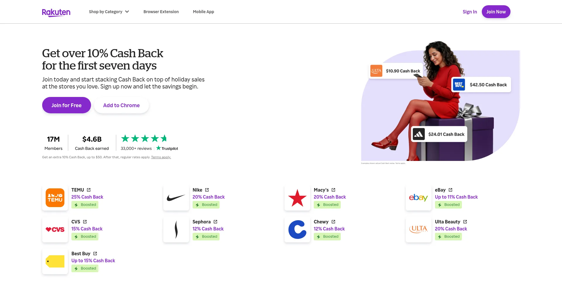 Since 1999, we've paid our members over $4.6 Billion in Cash Back. Join now for an extra 10% Cash Back boost. Shop 3,500+ stores using coupons or cash back!