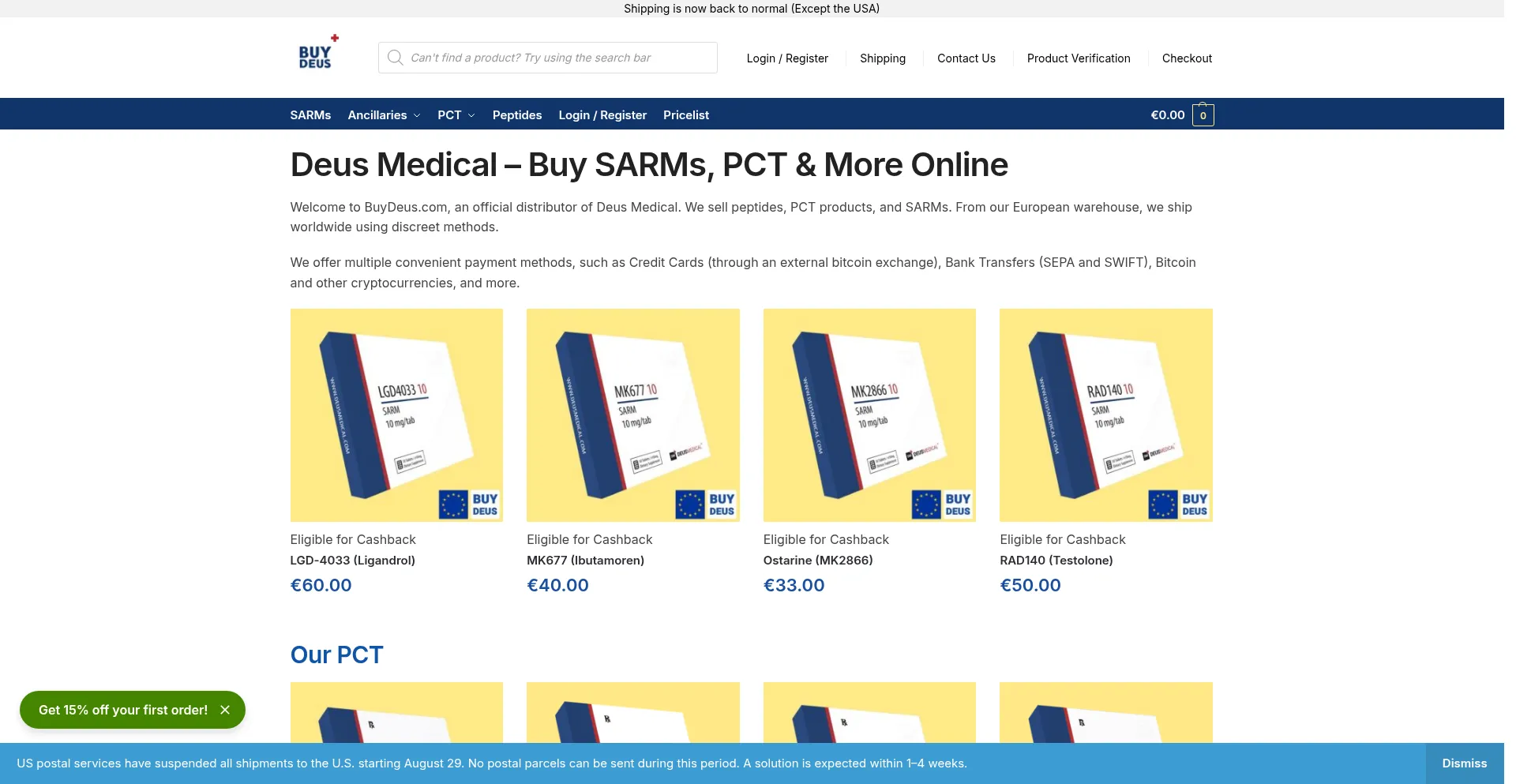 Welcome to BuyDeus.com - an official distributor of Deus Medical. We sell pharma-grade quality Steroids, Peptides, PCT drugs and SARMs.