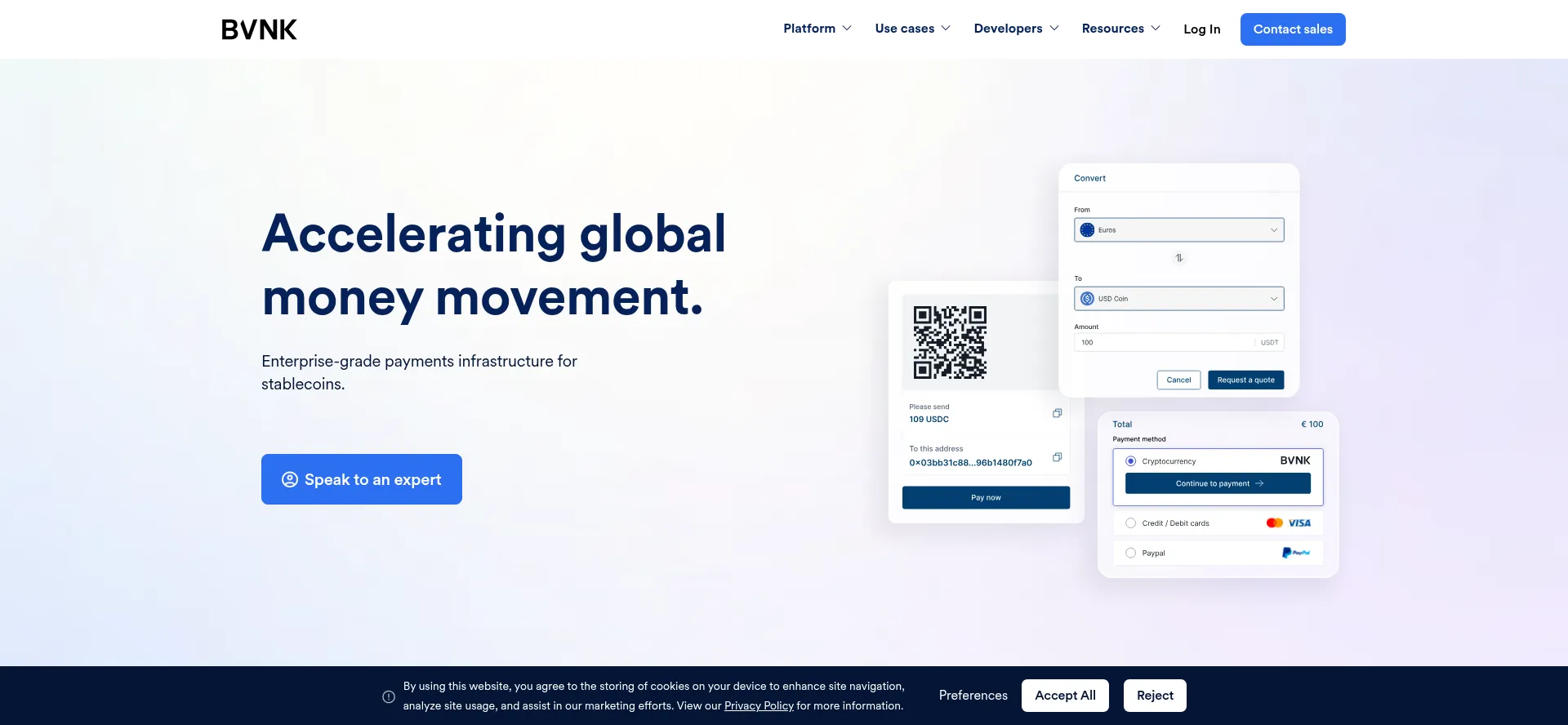 BVNK provides enterprise-grade infrastructure for stablecoin payments. We unify banks and blockchains in a single platform, to accelerate global money movement.