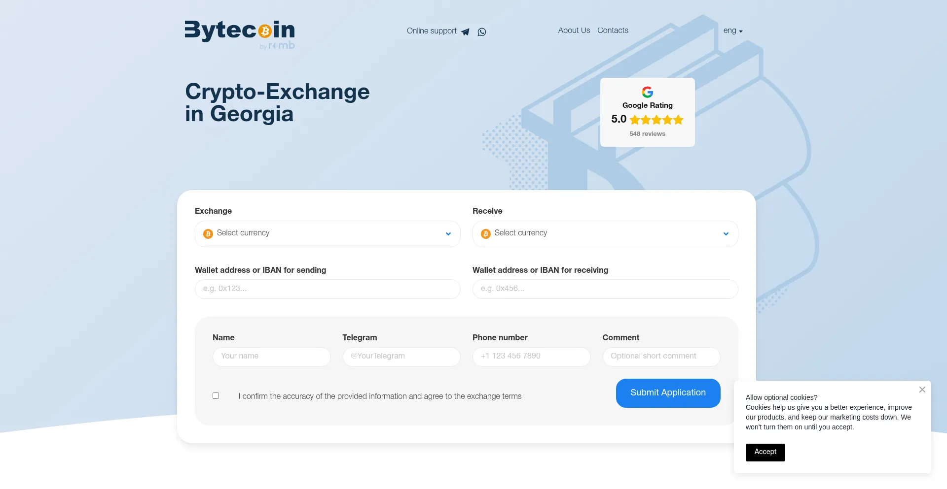 Licensed online crypto-exchange in Georgia. Fast service and favourable rates.