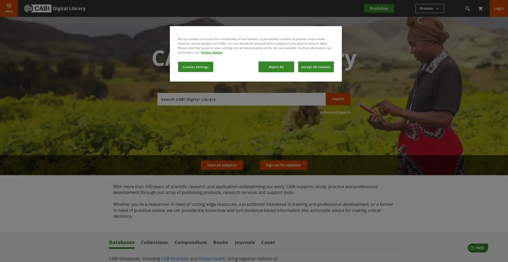 Die Website implementiert Cookie-Zustimmungsmechanismen in Compliance mit Datenschutzregulierungen wie DSGVO oder CCPA. Dies demonstriert, dass cabidigitallibrary.org Datenschutzstandards einhält und Benutzern Kontrolle über persönliche Datenerfassungspraktiken bietet.