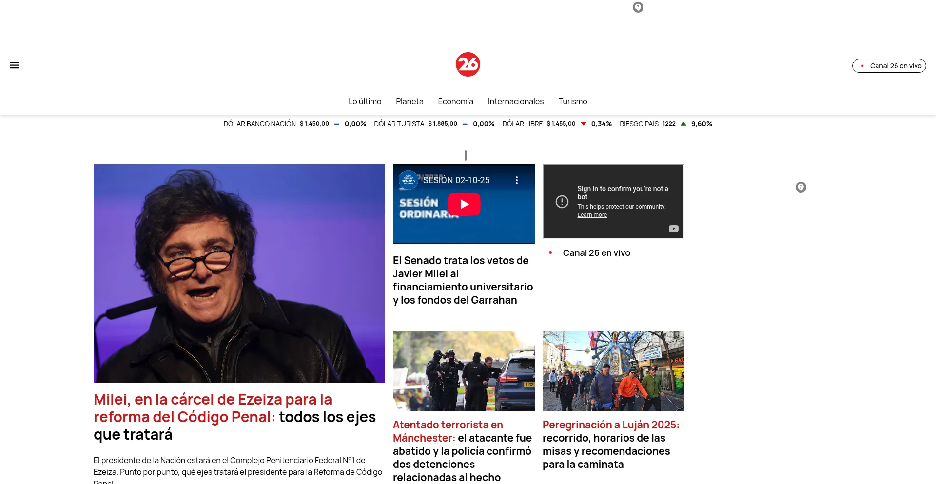 Canal26.com ofrece las últimas novedades de Argentina y el mundo: economía, política, turismo, horóscopo, Planeta, deportes, espectáculos, tecnología y más.