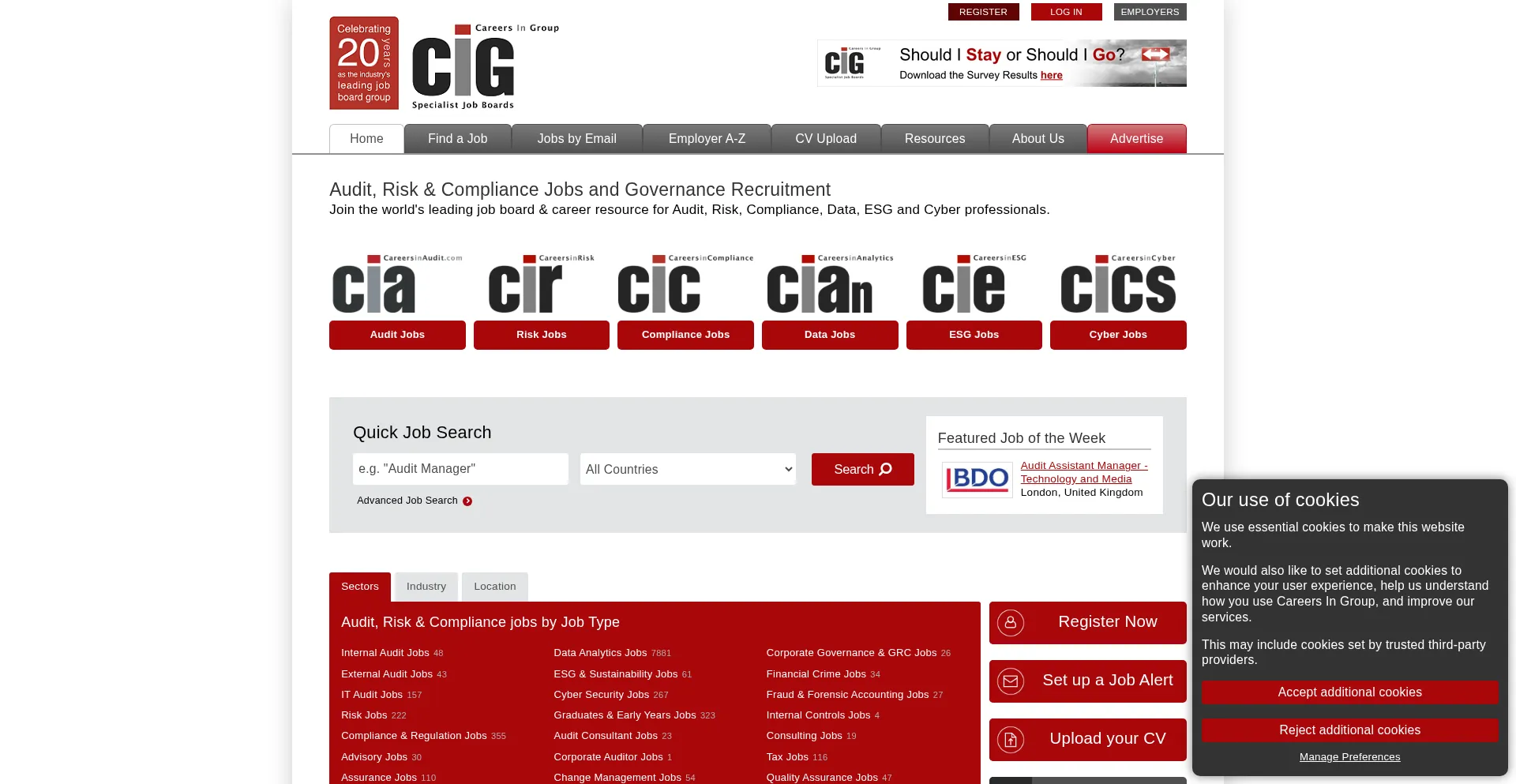 The world’s leading specialist job board group for Audit, Risk, Compliance, Data Analytics, ESG and Cyber Security. Find your next role with us.