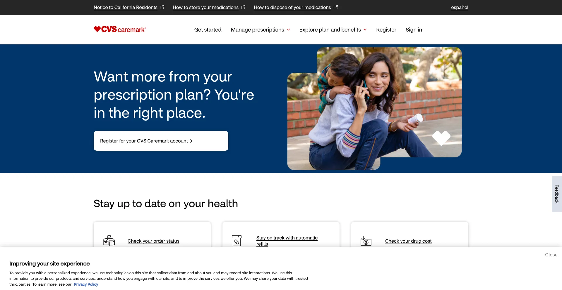 Die Website implementiert Cookie-Zustimmungsmechanismen in Compliance mit Datenschutzregulierungen wie DSGVO oder CCPA. Dies demonstriert, dass caremark.com Datenschutzstandards einhält und Benutzern Kontrolle über persönliche Datenerfassungspraktiken bietet.
