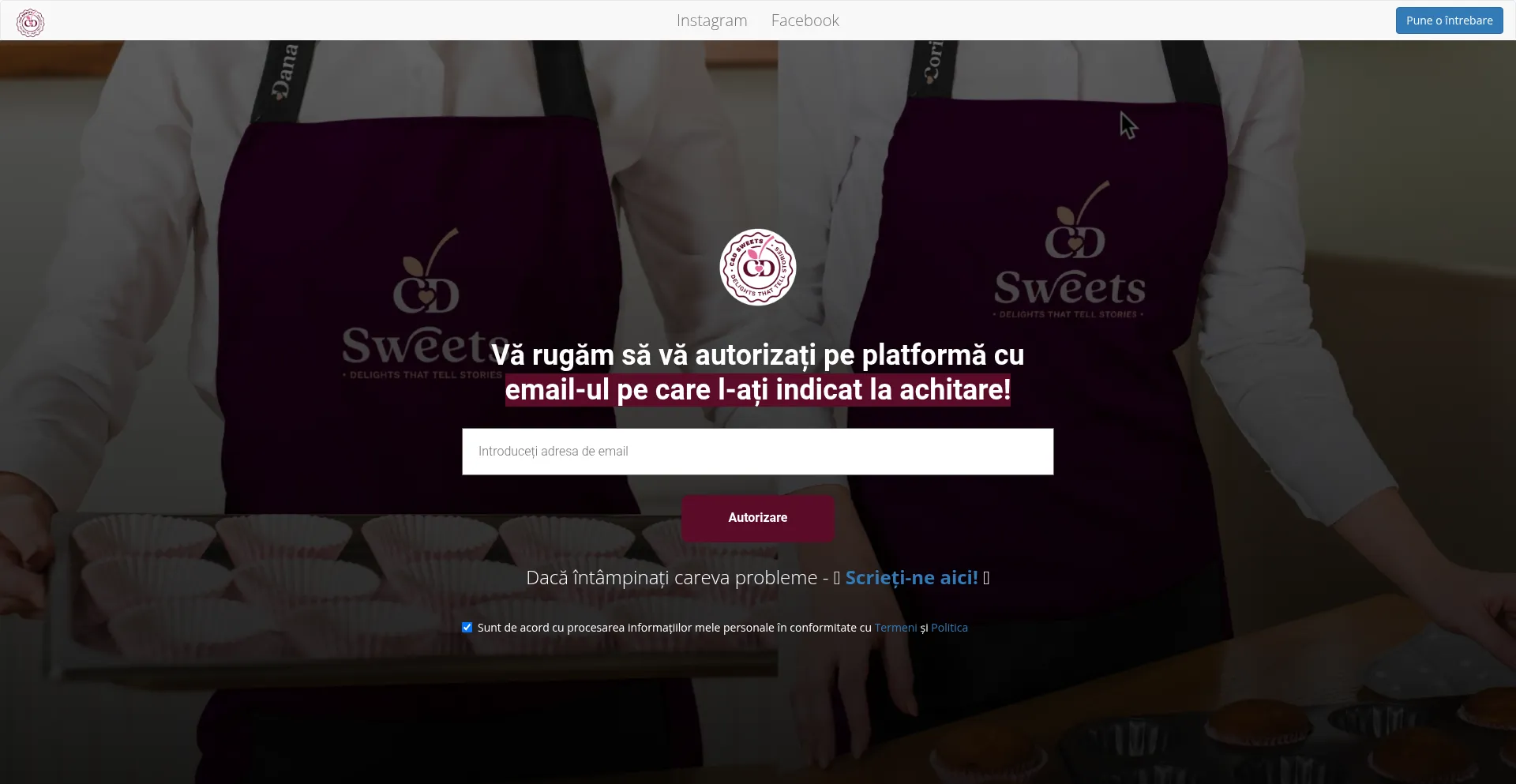 Vă rugăm să vă autorizați pe platformă cu email-ul pe care l-ați indicat la achitare!