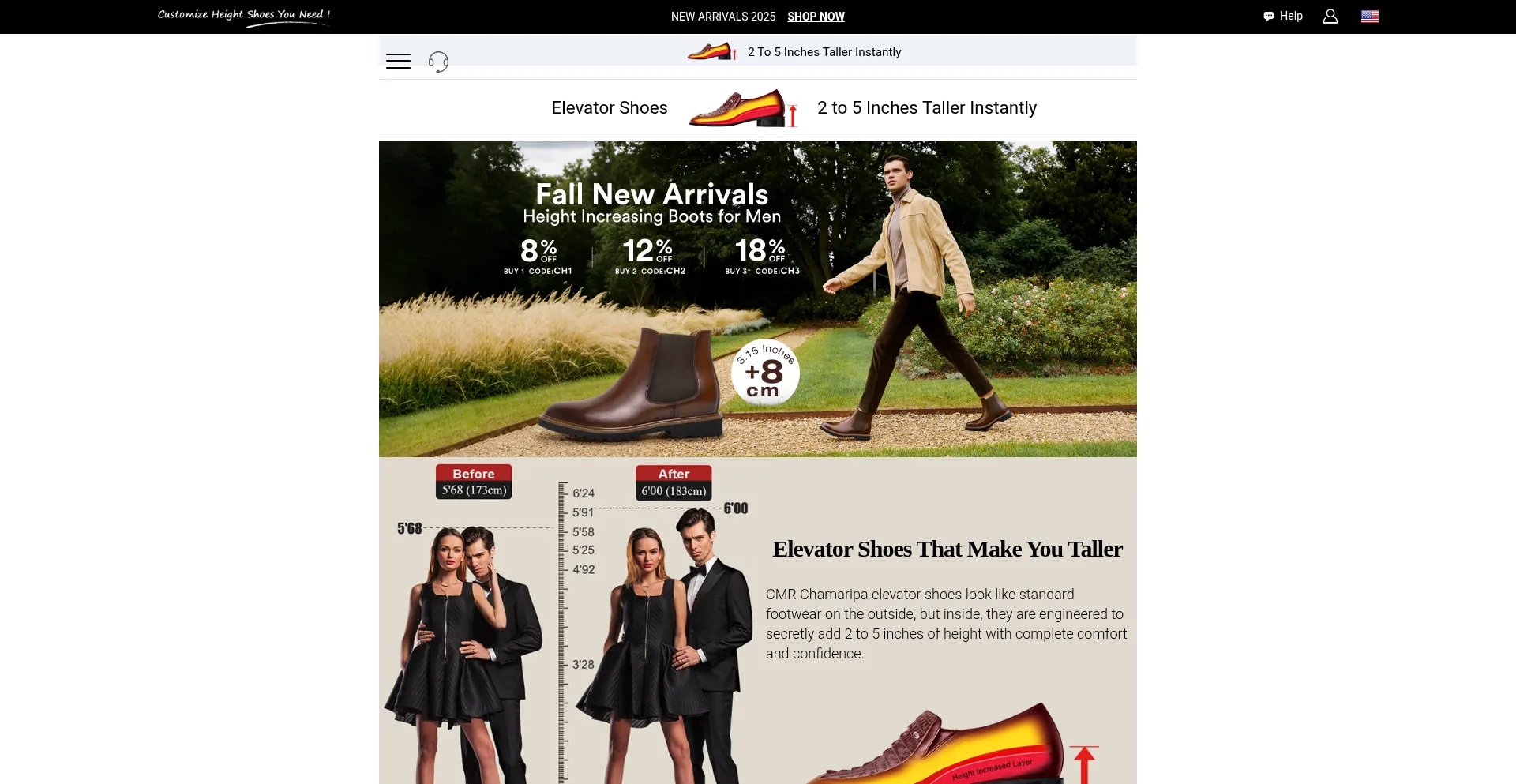 Elevator Shoes | Tall Men Height Increasing Shoes Make You Taller CMR Chamaripa