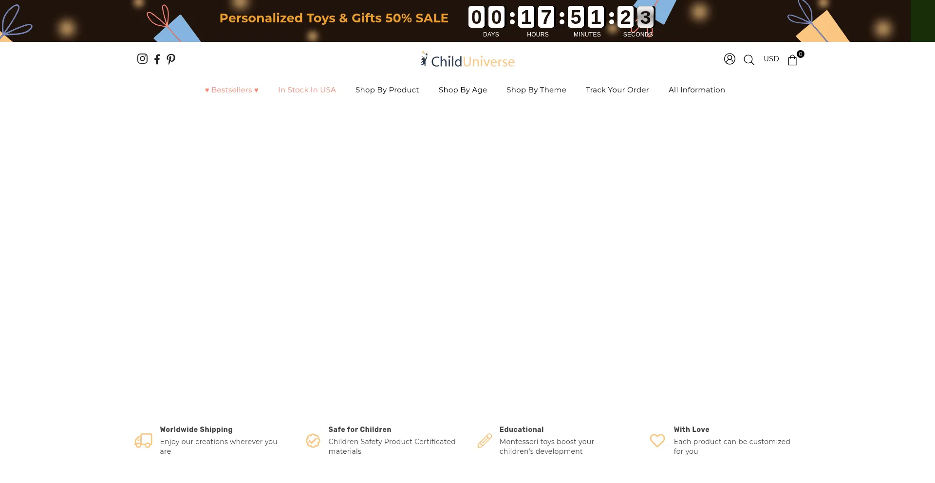 Die Anwesenheit von Social-Media-Links auf der Website deutet darauf hin, dass child-universe.com offizielle Konten auf Social-Media-Plattformen beibehält, was ein positiver Indikator für Glaubwürdigkeit und Engagement ist.