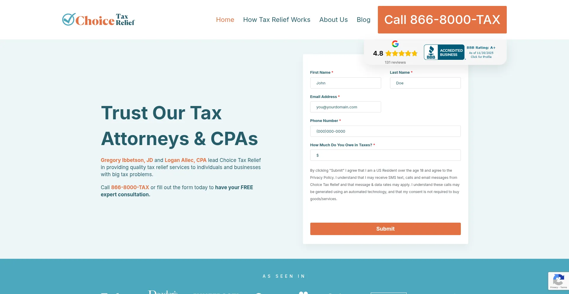 Choicetaxrelief.com Bewertungen – Ist diese Website sicher und vertrauenswürdig?