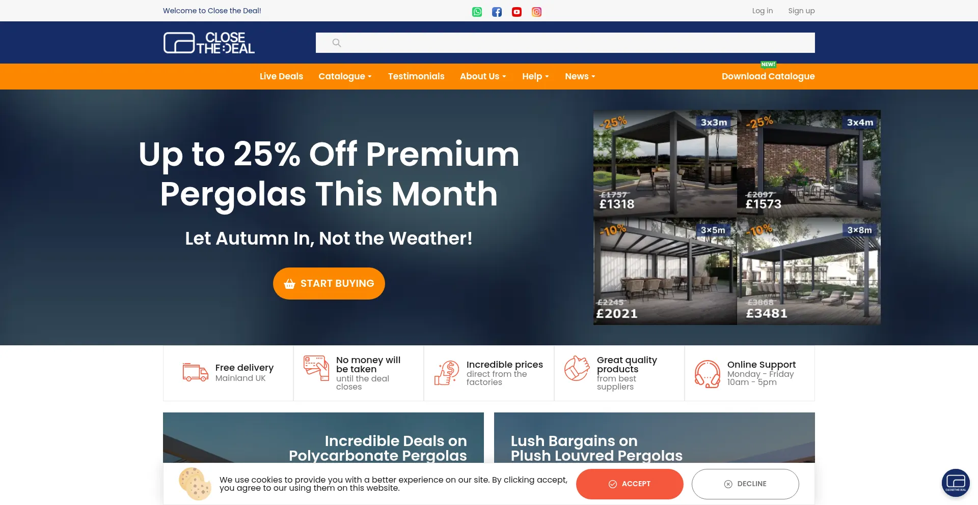 Die Website implementiert Cookie-Zustimmungsmechanismen in Compliance mit Datenschutzregulierungen wie DSGVO oder CCPA. Dies demonstriert, dass closethedeal.co.uk Datenschutzstandards einhält und Benutzern Kontrolle über persönliche Datenerfassungspraktiken bietet.