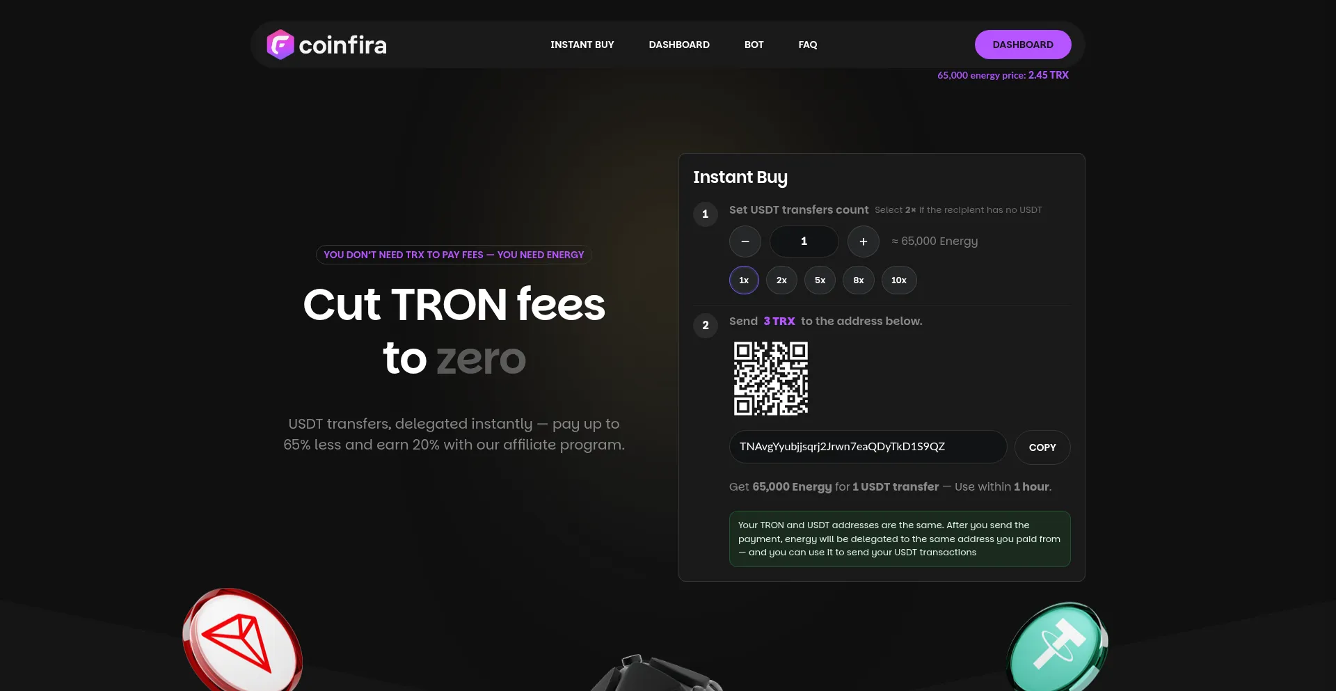 Coinfira Energy | Buy TRON energy for USDT transactions