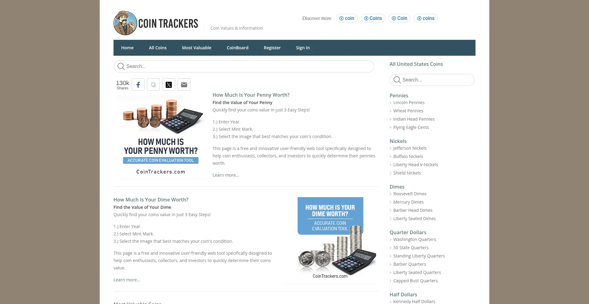 CoinTrackers.com is an online database that provides both numismatic and intrinsic coin values. In addition we've created some great tools and articles detailing the most import...