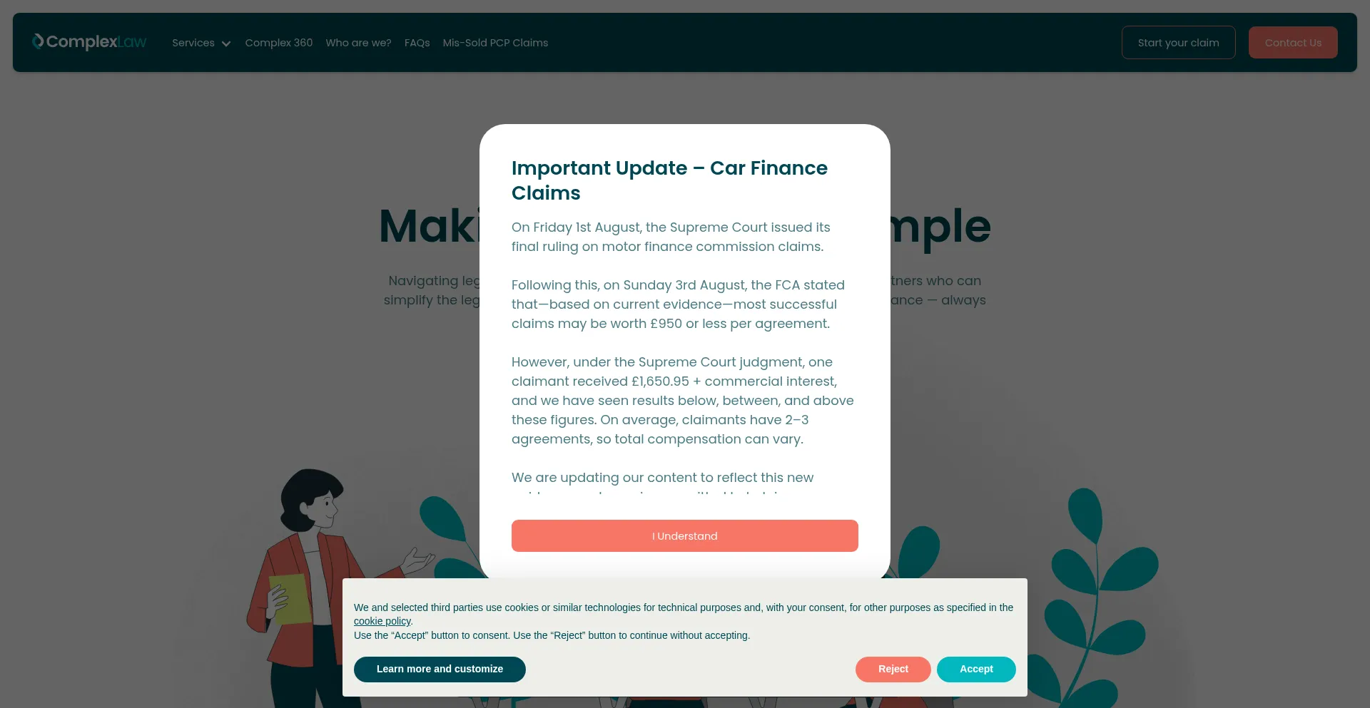 Die Website implementiert Cookie-Zustimmungsmechanismen in Compliance mit Datenschutzregulierungen wie DSGVO oder CCPA. Dies demonstriert, dass complexlaw.co.uk Datenschutzstandards einhält und Benutzern Kontrolle über persönliche Datenerfassungspraktiken bietet.