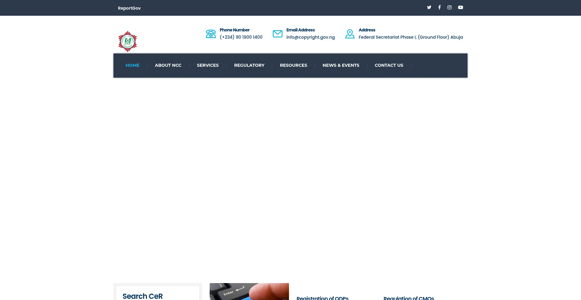 Die Anwesenheit von Social-Media-Links auf der Website deutet darauf hin, dass copyright.gov.ng offizielle Konten auf Social-Media-Plattformen beibehält, was ein positiver Indikator für Glaubwürdigkeit und Engagement ist.