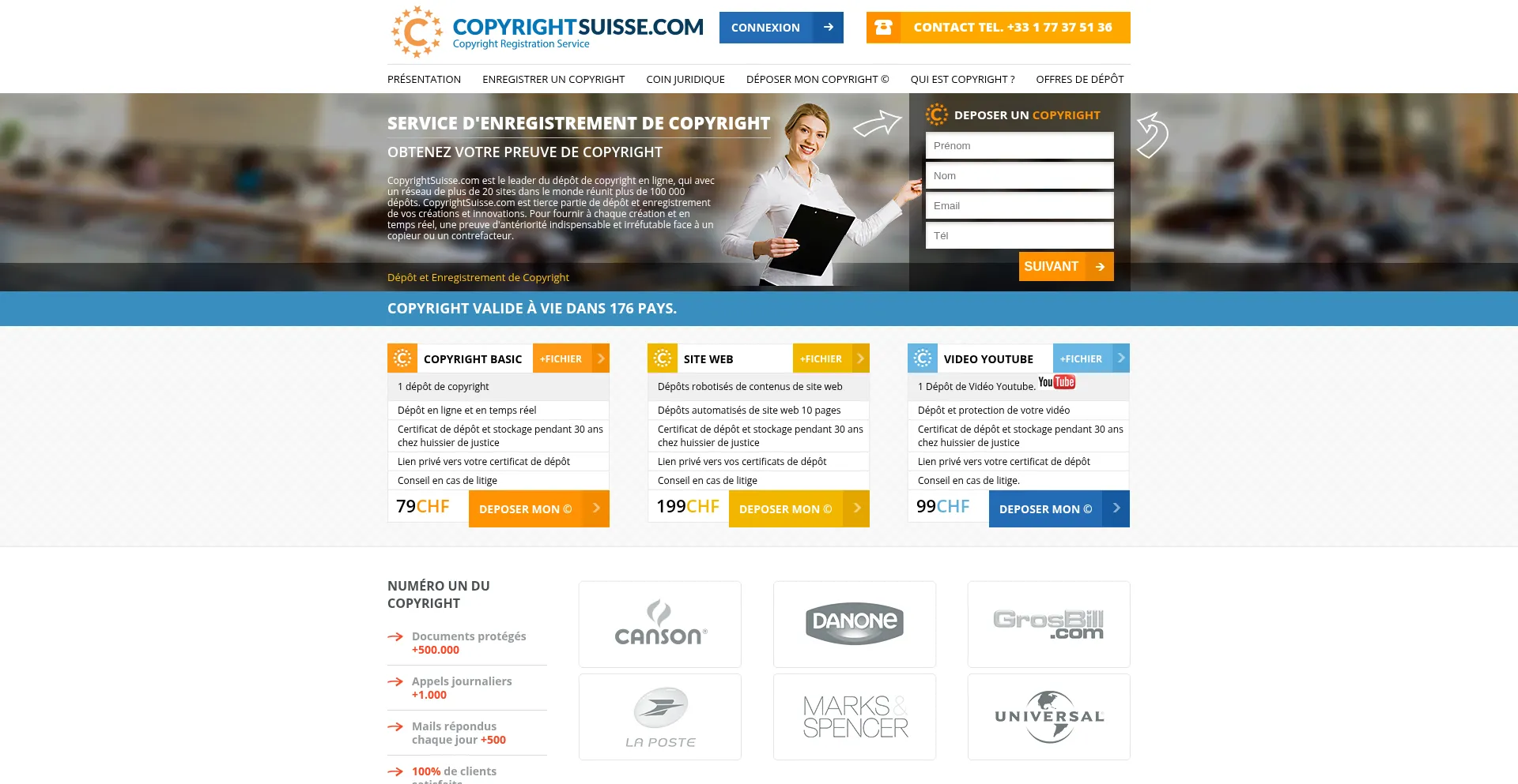 COPYRIGHTSUISSE.COM ™ Service de protection de dépôt et d'enregistrement de Copyright © Suisse en ligne. Copyright certifié par Huissier de Justice.