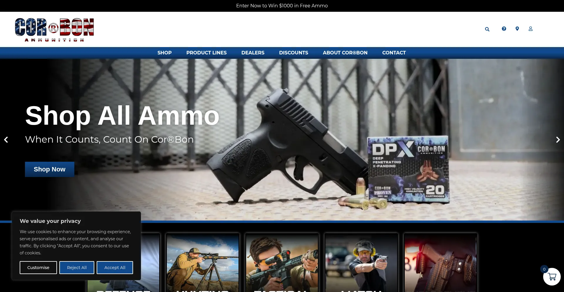 Shop COR®BON Ammunition—trusted for over 30 years. High-velocity handgun and rifle loads built for defense, hunting, and tactical.