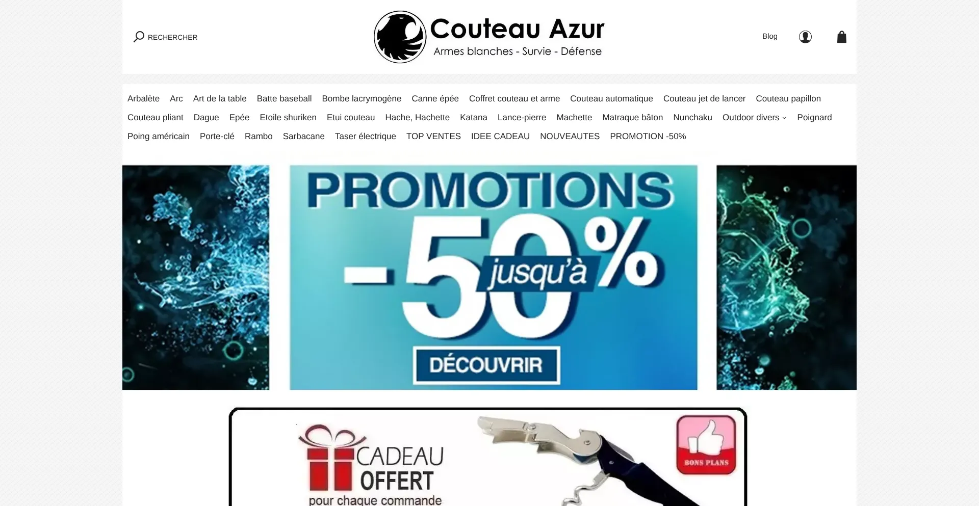 COUTEAU AZUR Achat Vente Taser, Machette, Katana, Arbalète