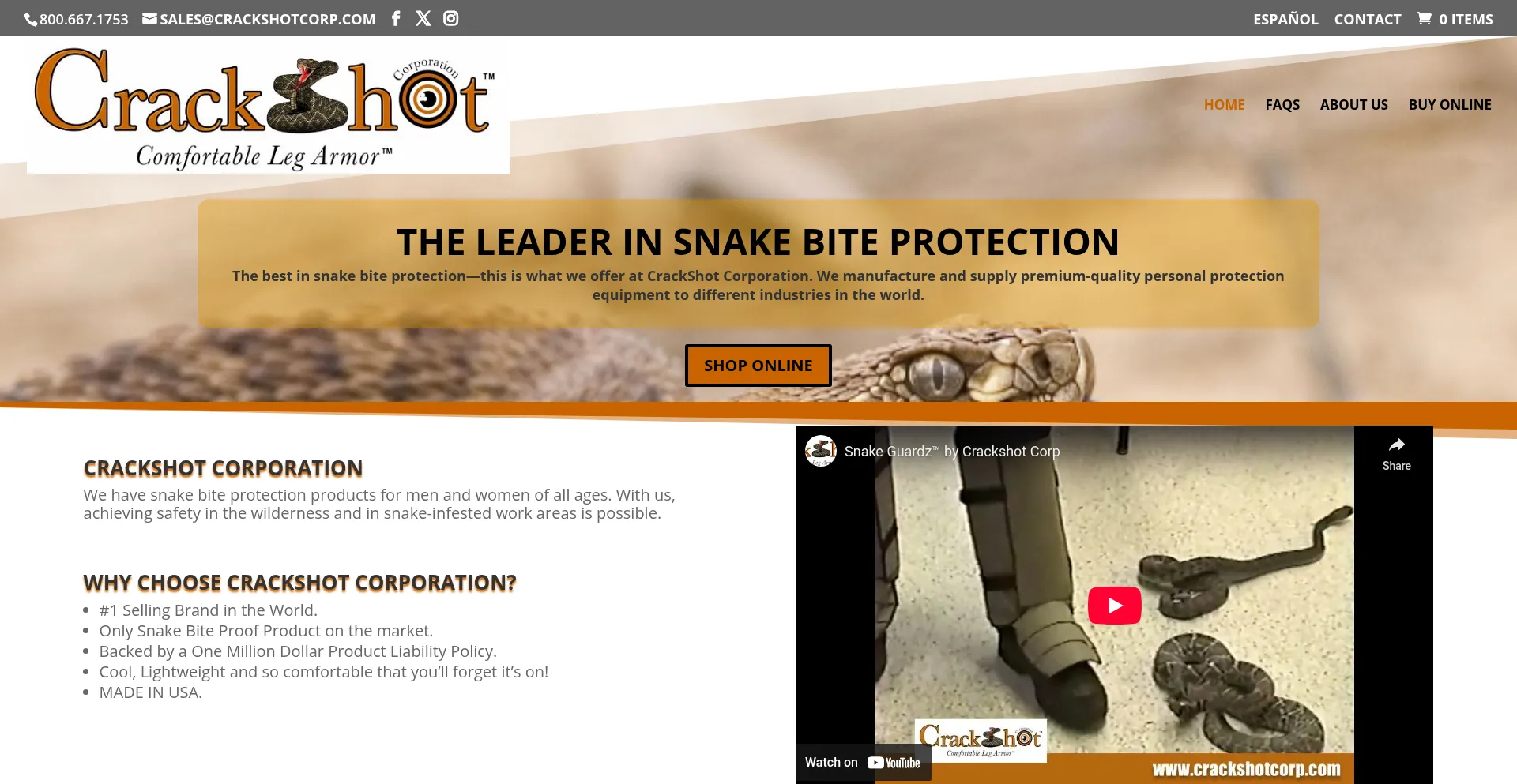 The best in snake bite protection—this is what we offer at CrackShot Corporation.