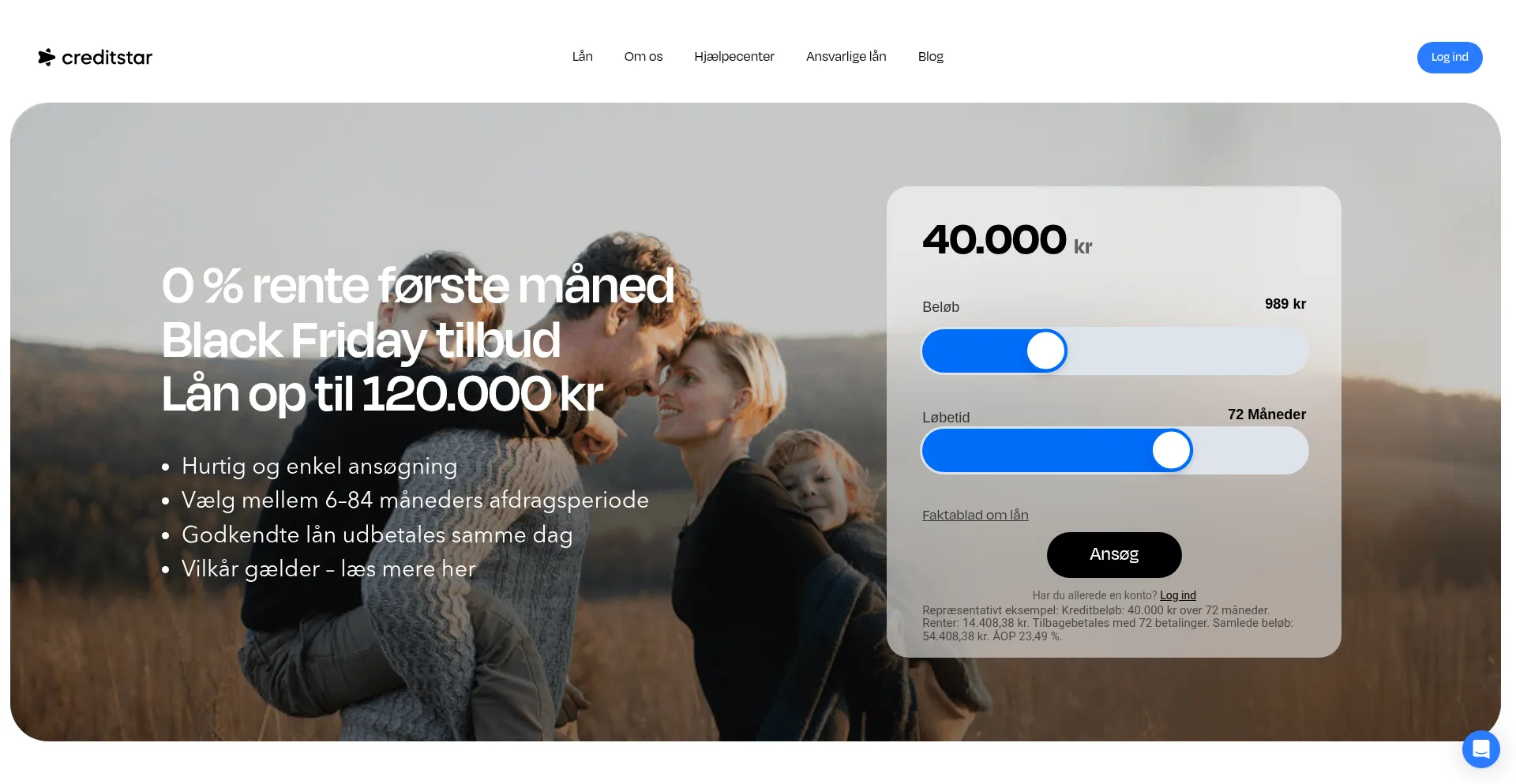 Lån op til 120.000 kr med fleksibel tilbagebetaling. 100 % online ansøgning, hurtigt svar og ingen krav om sikkerhed. Ansøg på få minutter.