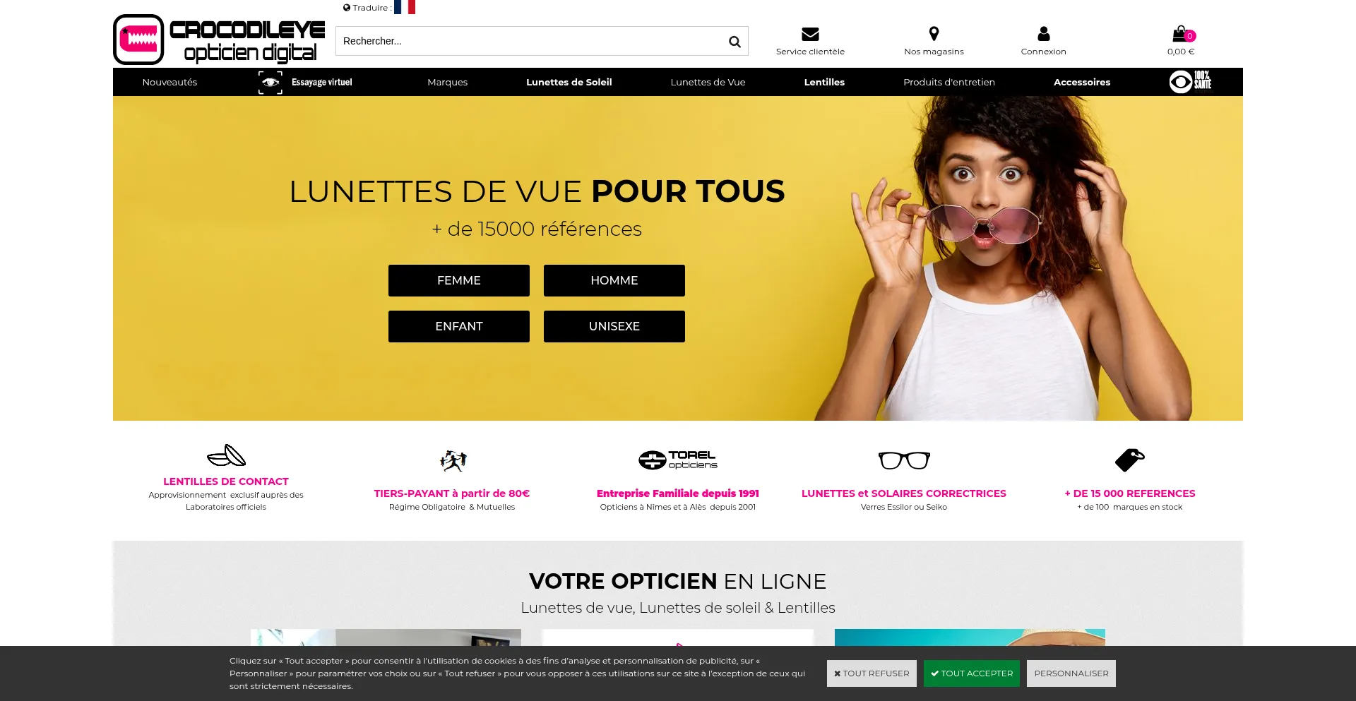 Vente de Lunettes, Lunettes de Soleil pour Femme, Homme, Enfant, Lentilles de contact - Boutique Crocodileye, Opticien en ligne