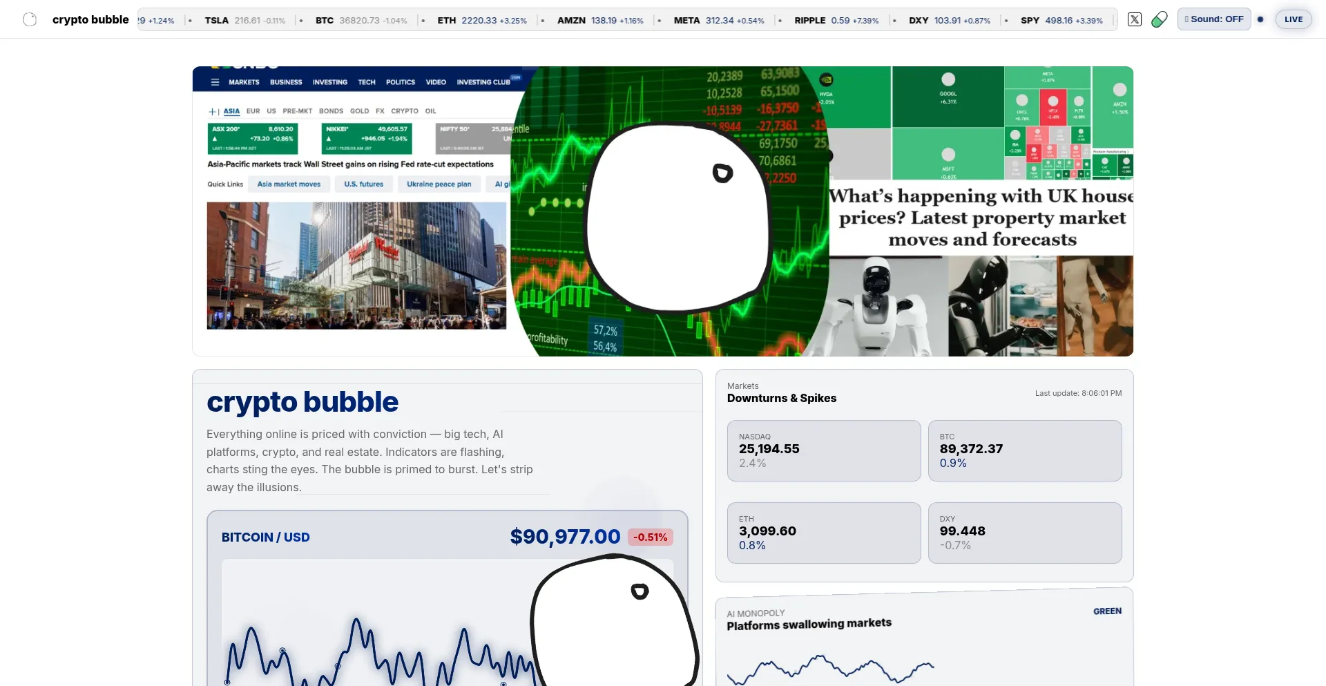 Everything online is priced with conviction — big tech, AI platforms, crypto, and real estate.