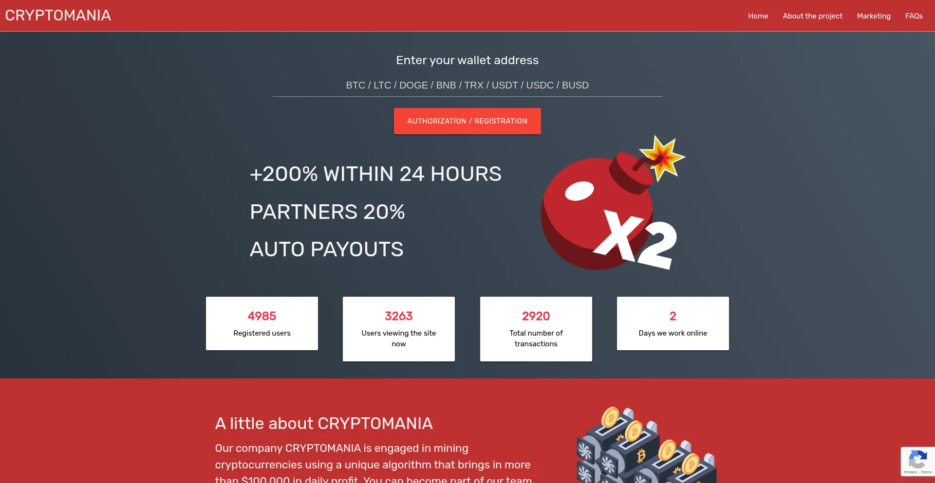 CRYPTOMANIA - up to 200% daily profit