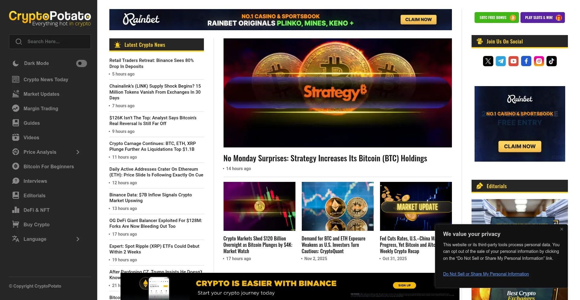 Die Anwesenheit von Social-Media-Links auf der Website deutet darauf hin, dass cryptopotato.com offizielle Konten auf Social-Media-Plattformen beibehält, was ein positiver Indikator für Glaubwürdigkeit und Engagement ist.