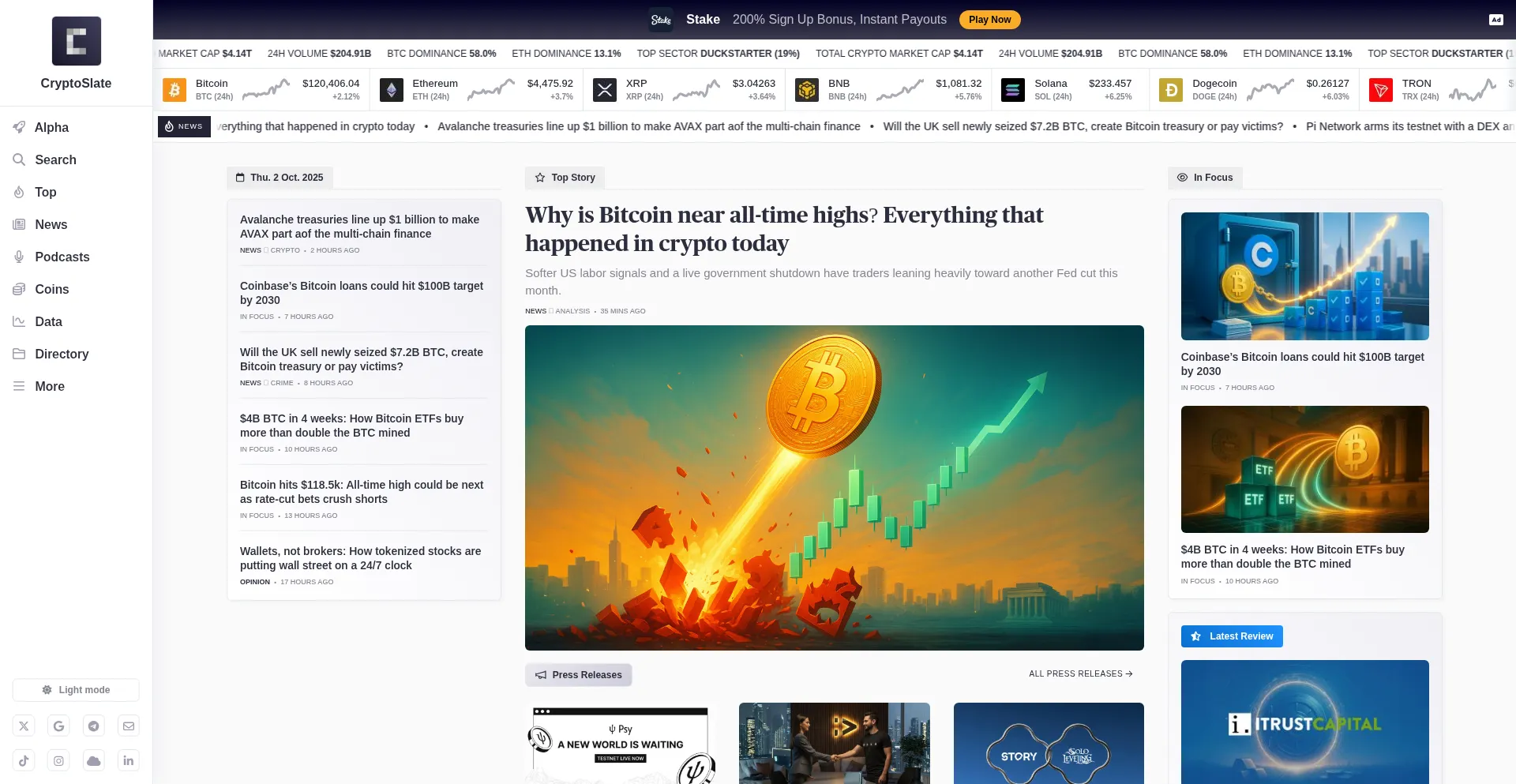 Crypto News, Coin Prices & Market Trends | CryptoSlate