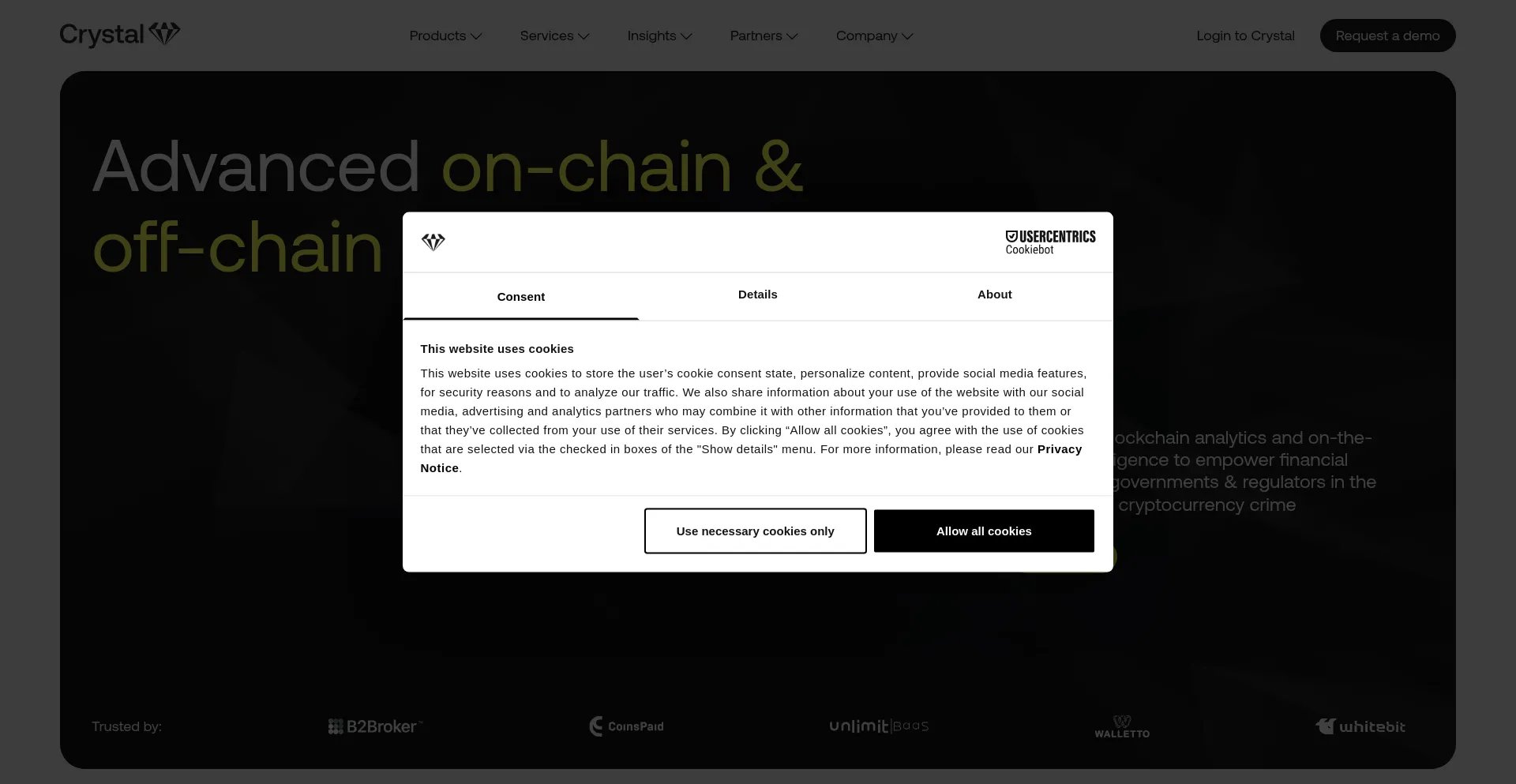 Die Website implementiert Cookie-Zustimmungsmechanismen in Compliance mit Datenschutzregulierungen wie DSGVO oder CCPA. Dies demonstriert, dass crystalintelligence.com Datenschutzstandards einhält und Benutzern Kontrolle über persönliche Datenerfassungspraktiken bietet.