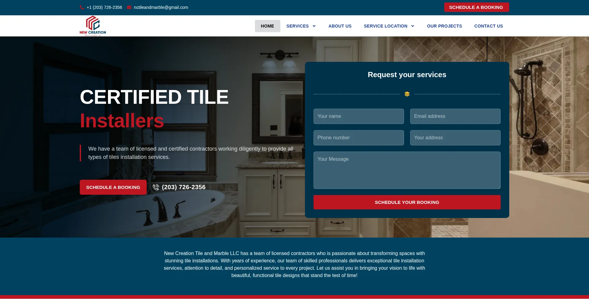 If you are looking for a professional for tile installation near Middletown, contact New Creation Tile and Marble LLC.