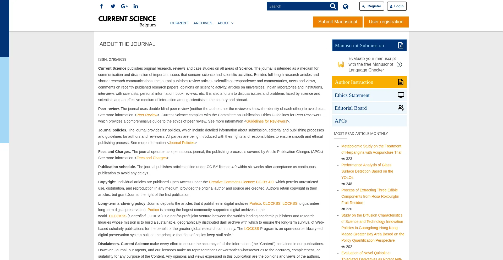 Die Anwesenheit von Social-Media-Links auf der Website deutet darauf hin, dass currentscience.info offizielle Konten auf Social-Media-Plattformen beibehält, was ein positiver Indikator für Glaubwürdigkeit und Engagement ist.