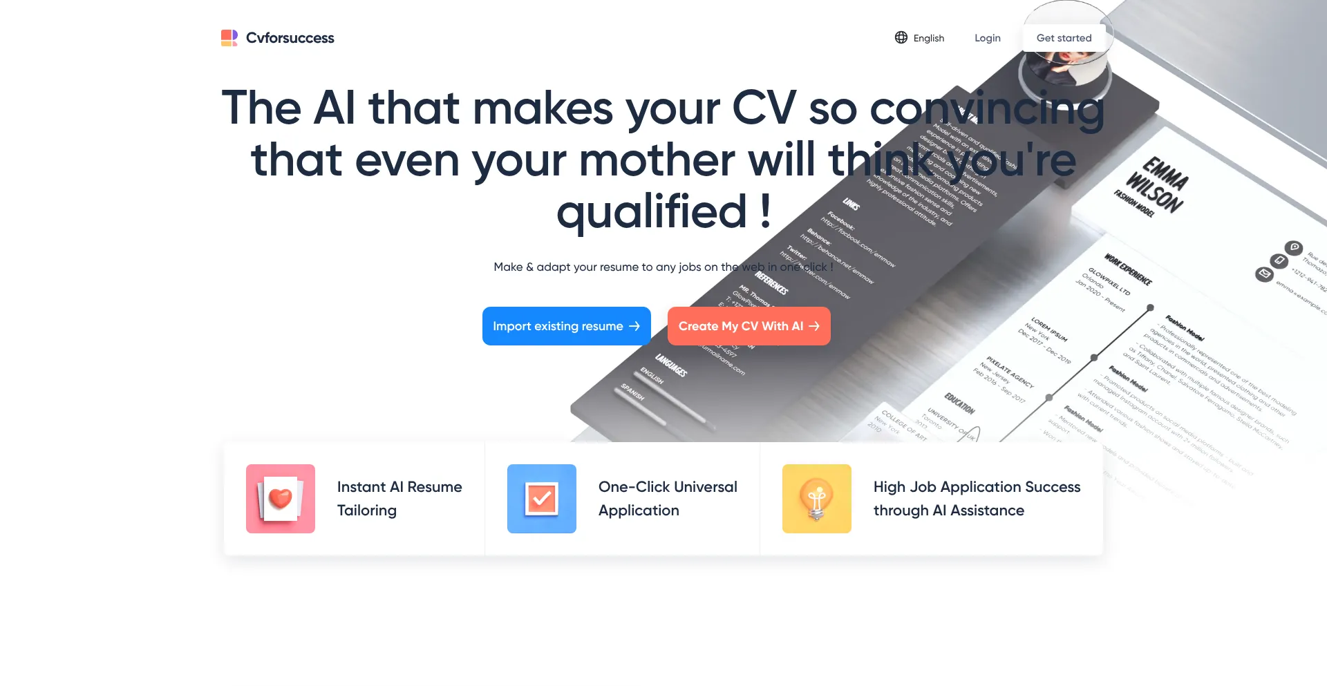 Build an ATS-ready resume fast with cvforsuccess. Cutting-edge AI writes tailored bullet points, optimizes wording, and formats perfectly.