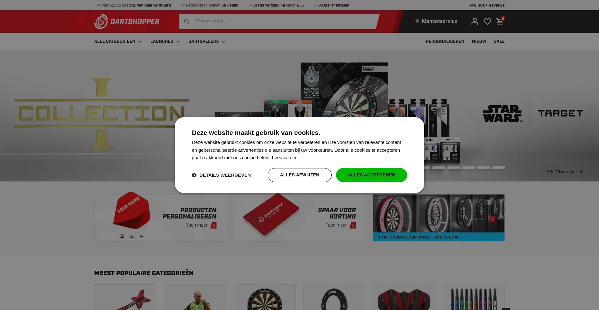 Die Website implementiert Cookie-Zustimmungsmechanismen in Compliance mit Datenschutzregulierungen wie DSGVO oder CCPA. Dies demonstriert, dass dartshopper.nl Datenschutzstandards einhält und Benutzern Kontrolle über persönliche Datenerfassungspraktiken bietet.