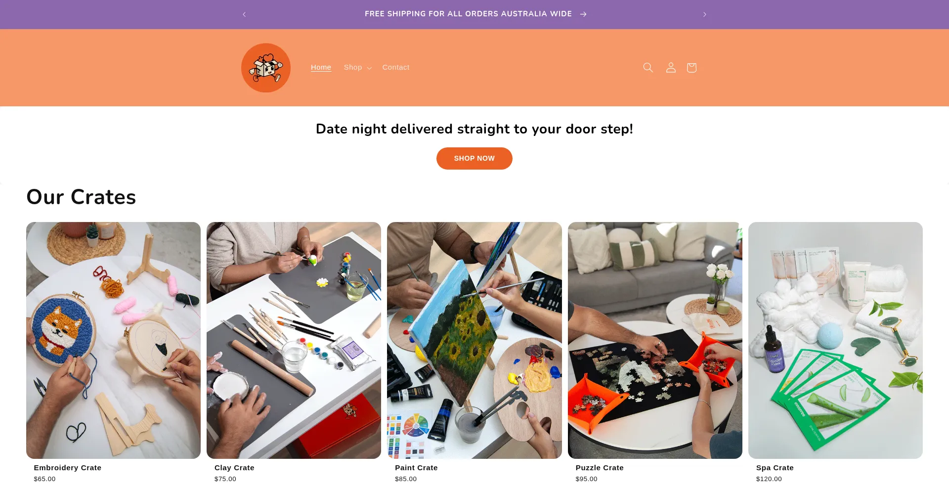 Australia’s most creative date night kits, delivered to your door. Choose from 5 themed crates for unforgettable nights in with your partner.