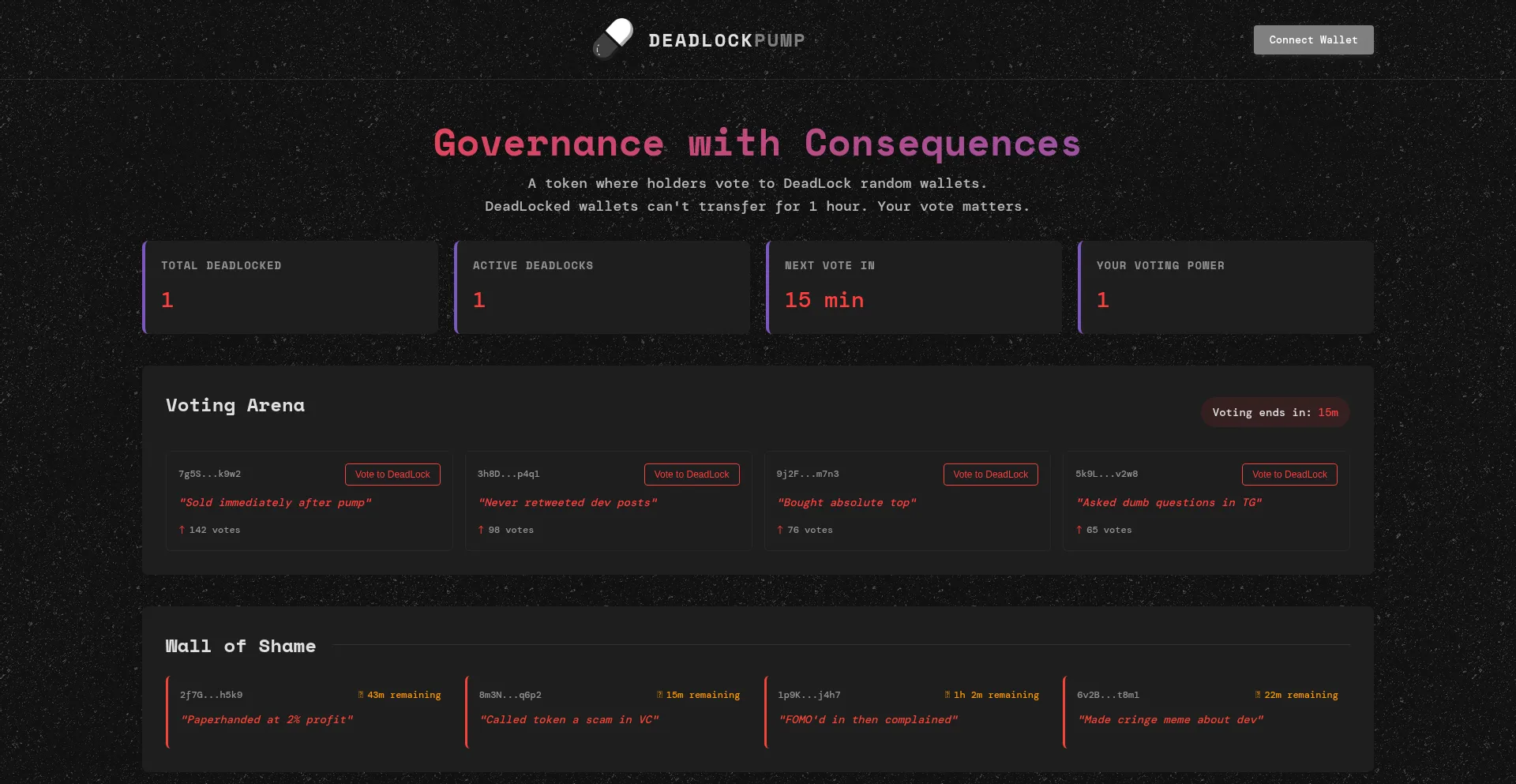 A token where holders vote to DeadLock random wallets.