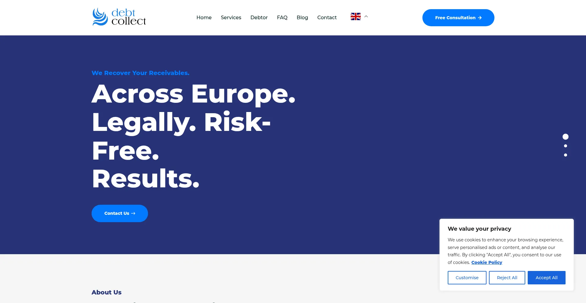 Die Website implementiert Cookie-Zustimmungsmechanismen in Compliance mit Datenschutzregulierungen wie DSGVO oder CCPA. Dies demonstriert, dass debtcollect.net Datenschutzstandards einhält und Benutzern Kontrolle über persönliche Datenerfassungspraktiken bietet.