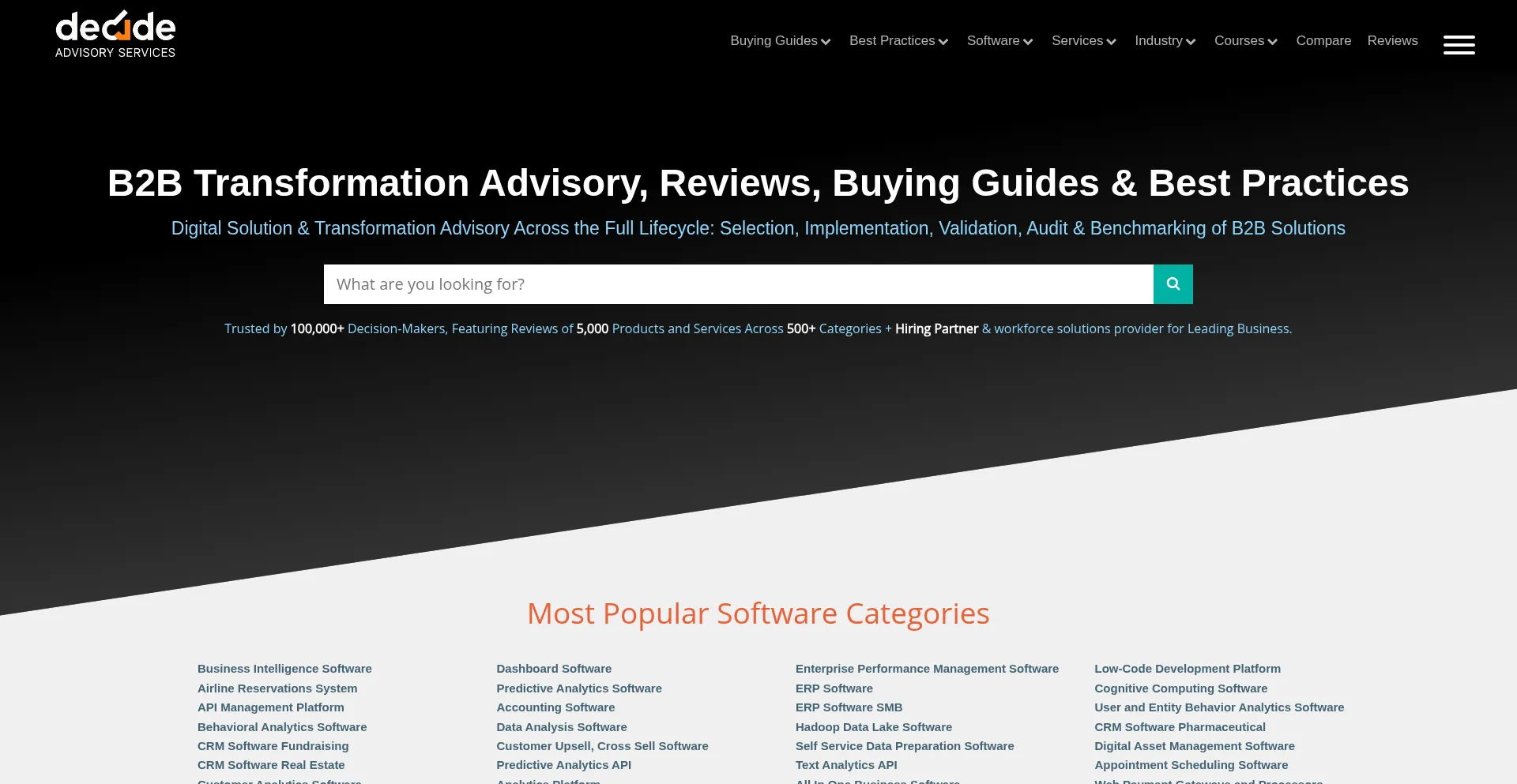 Decide Advisory Services: B2B Digital Solution & Transformation Advisory, Reviews, Buying Guides, Best Practices & Benchmarking.