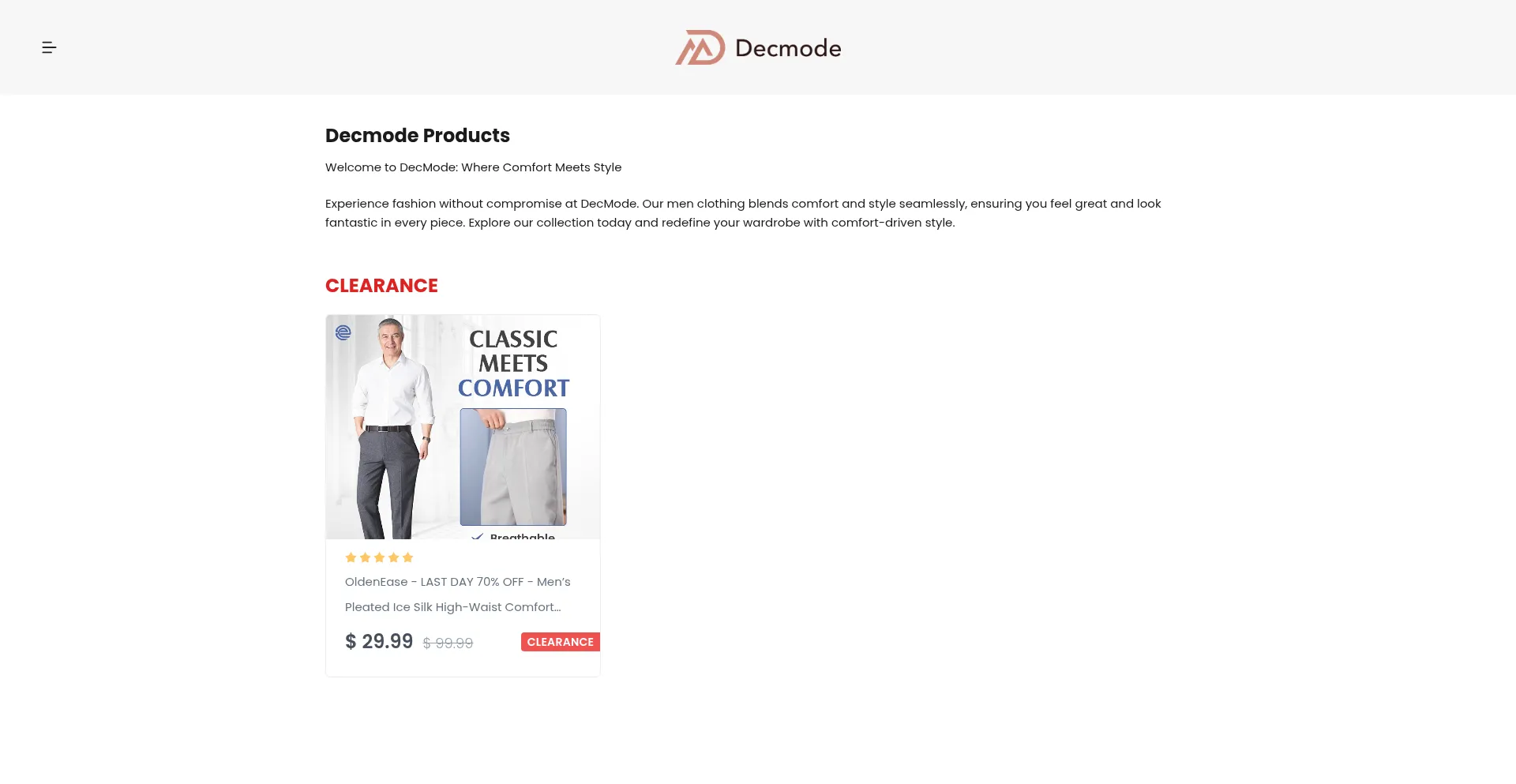 Welcome to DecMode: Where Comfort Meets Style Experience fashion without compromise at DecMode. Our men clothing blends comfort and style seamlessly, ensuring you feel great an...