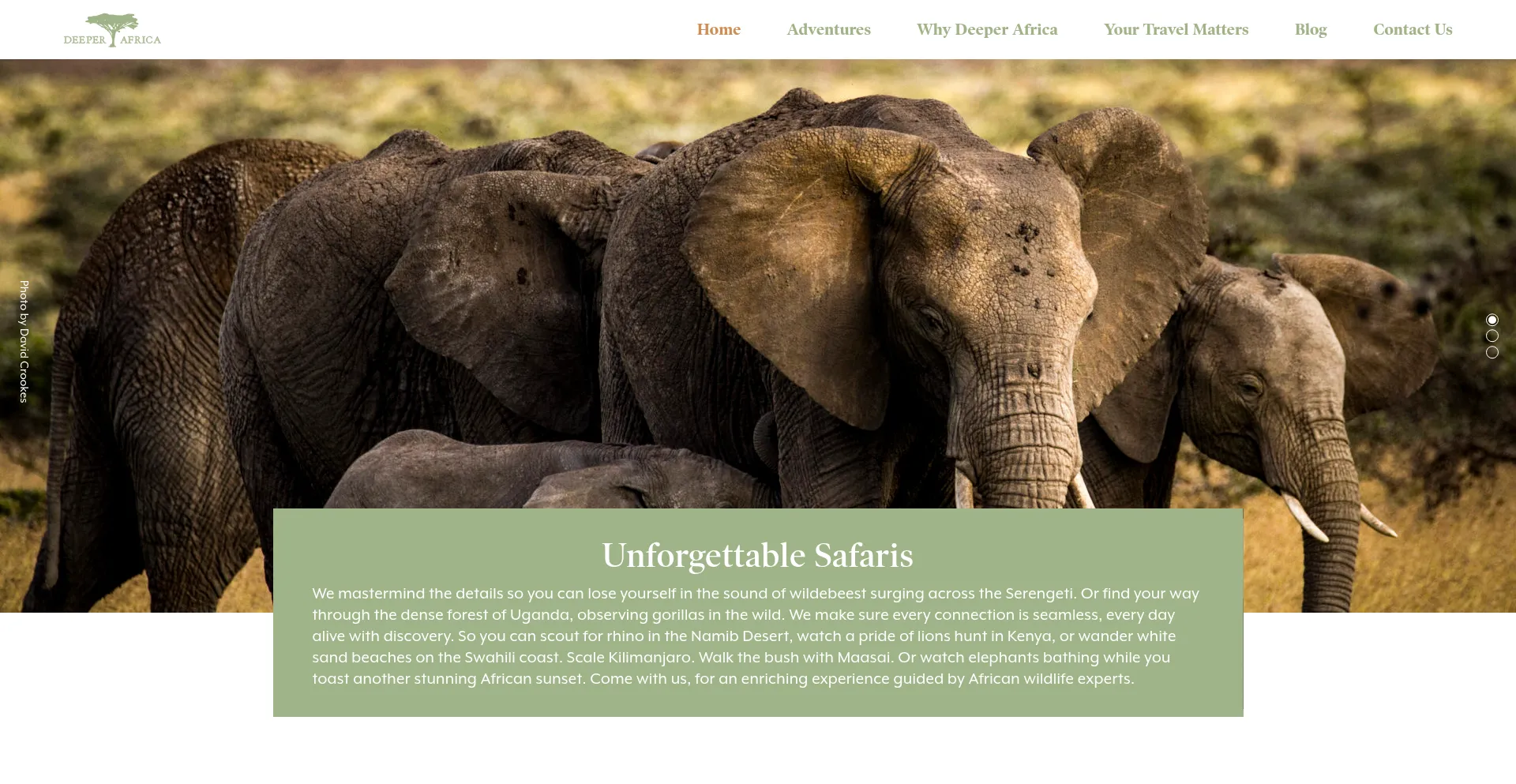 Discover luxury African safaris handcrafted by Deeper Africa’s experts — private journeys across Kenya, Tanzania, & beyond, honored by Travel + Leisure and Condé Nast.