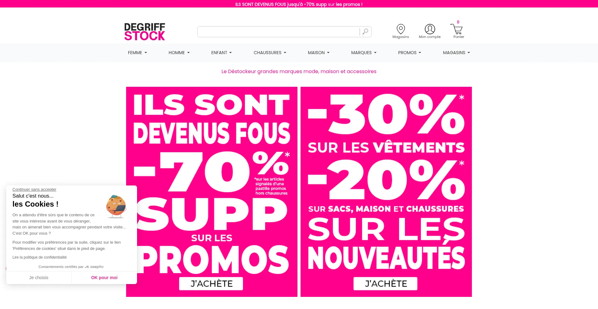 Degriffstock : grandes marques à prix dégriffés pour toute la famille. Vêtements, chaussures, accessoires jusqu’à -70%. Livraison rapide & retours faciles.